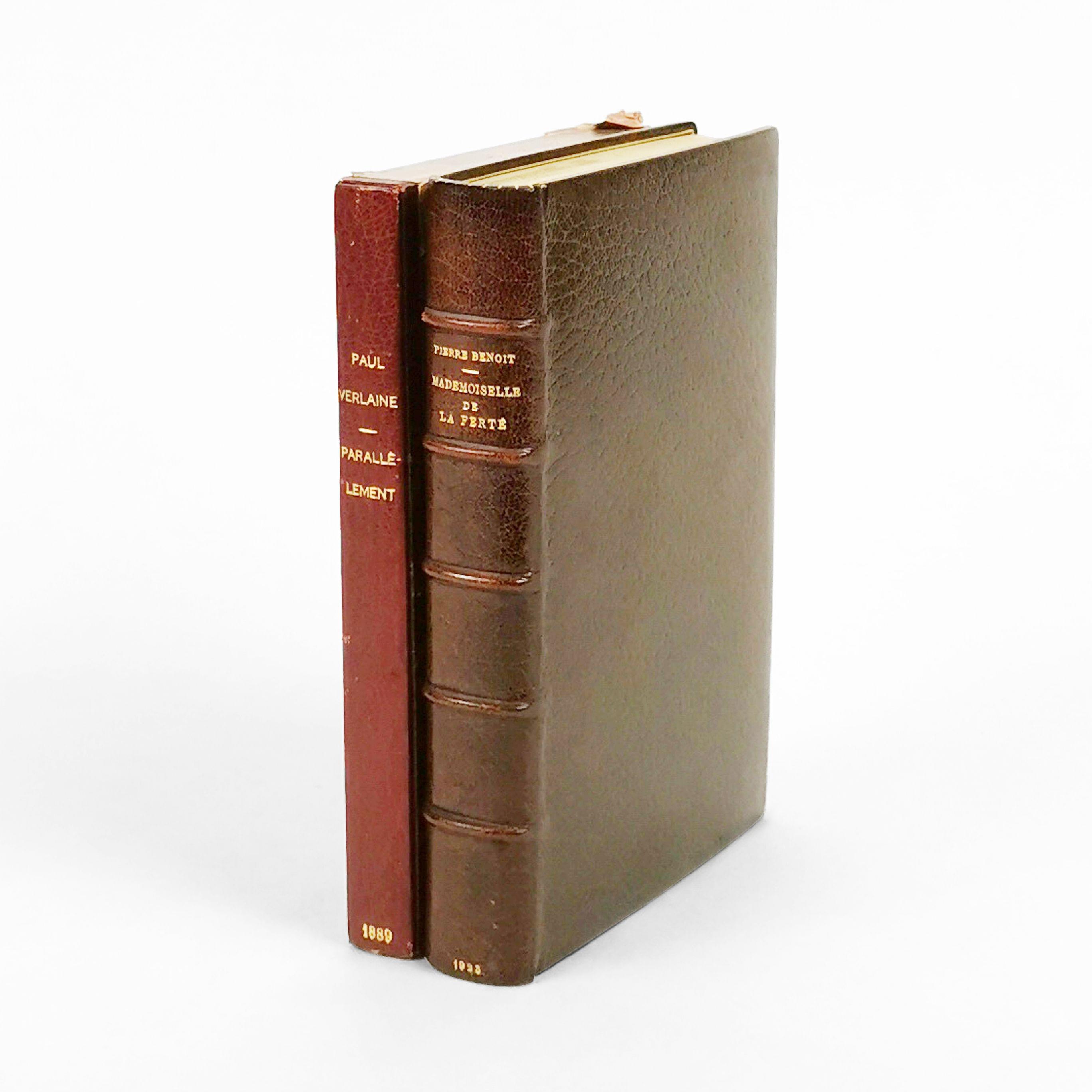 - BENOIT (Pierre) : Mademoiselle de La ferté. Edition originale ; maroquin brun.- VERLAINE (Paul) : Parallèlement. Paris, Vanier 1889 ; in 12 broché, chemise et étui. Edition originale.