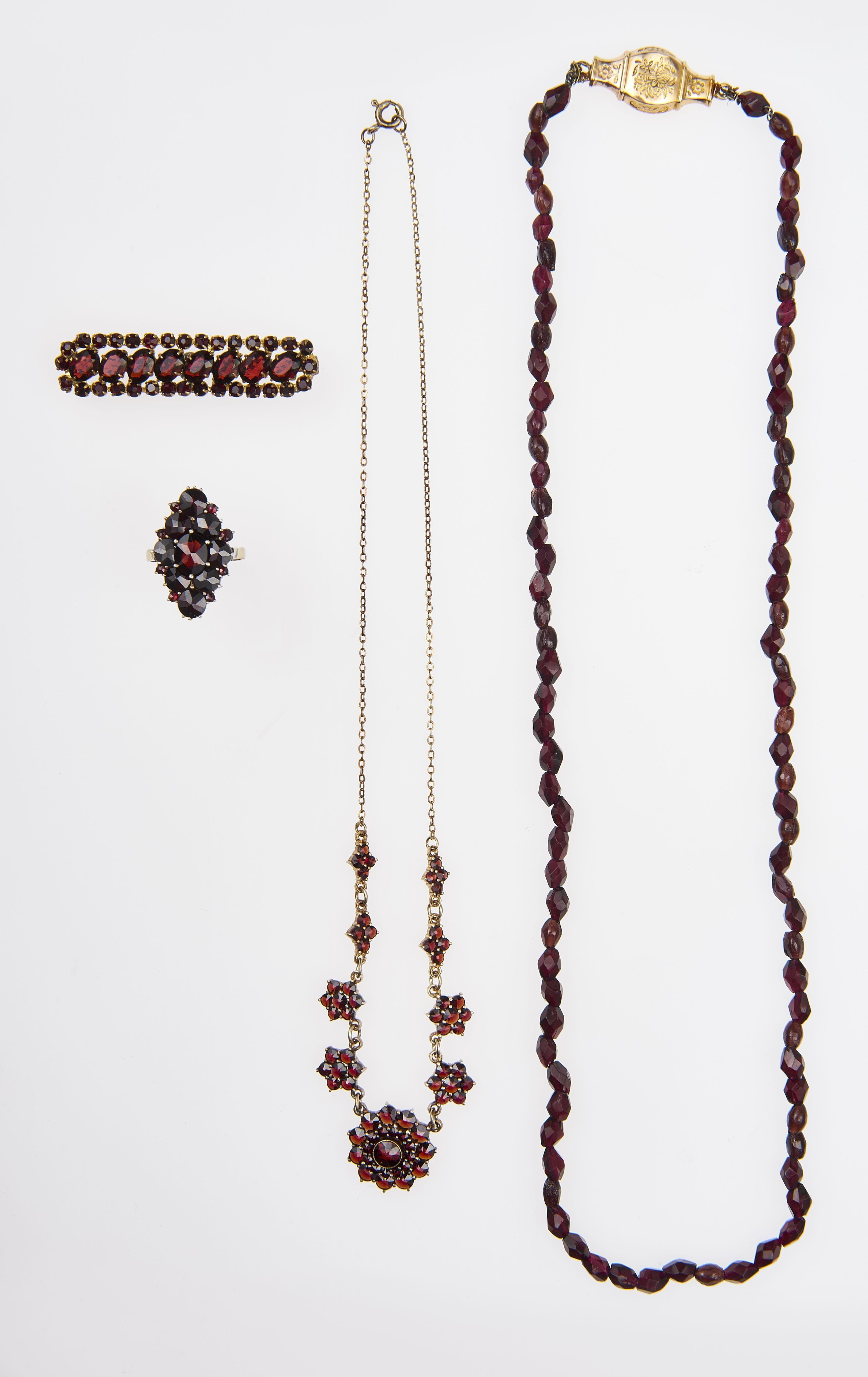 3218. Ensemble de bijoux sertis de grenat comprenant :