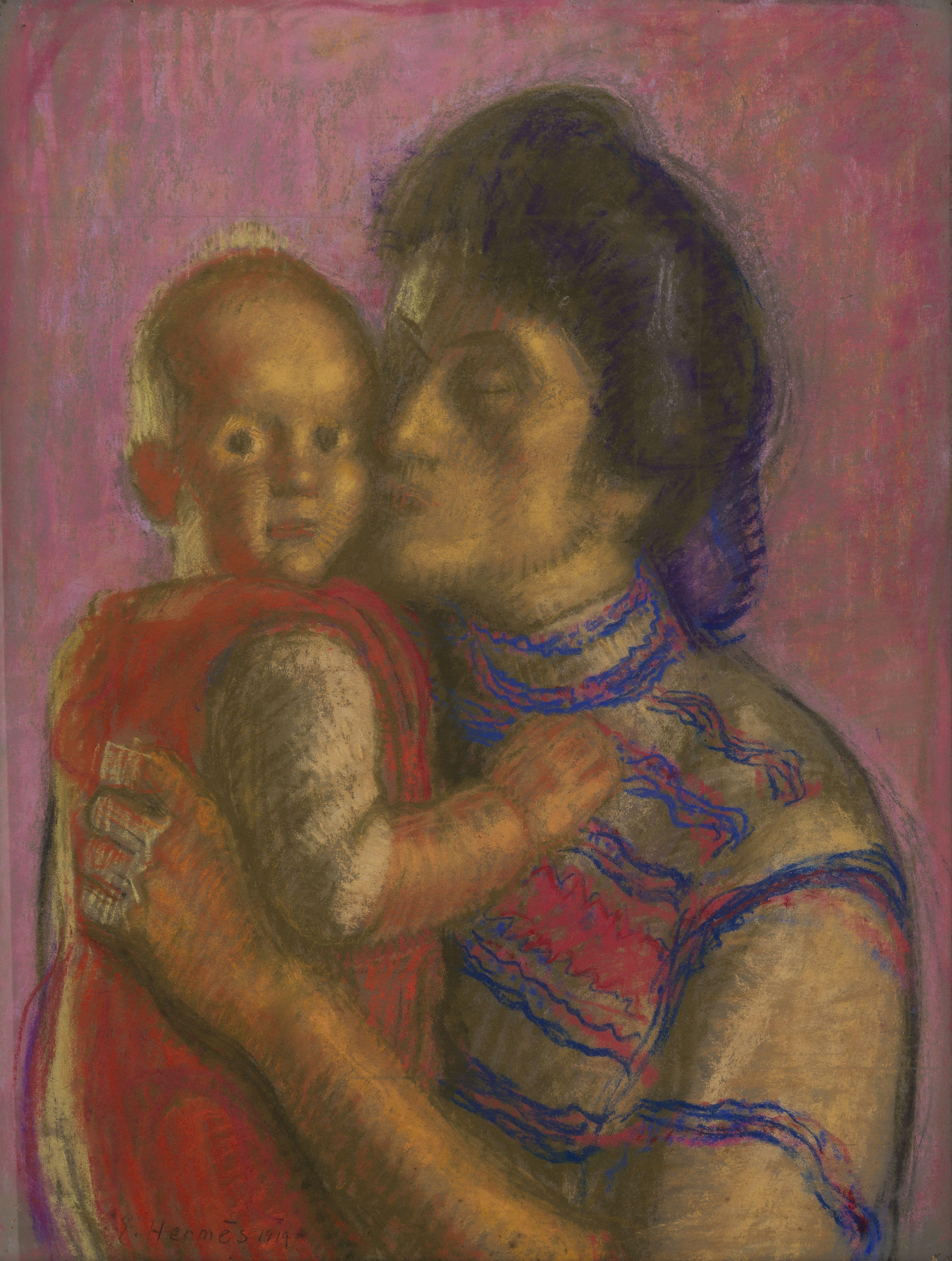 Maternité, pastel sur papier, signé et daté 1914, 64x49 cm