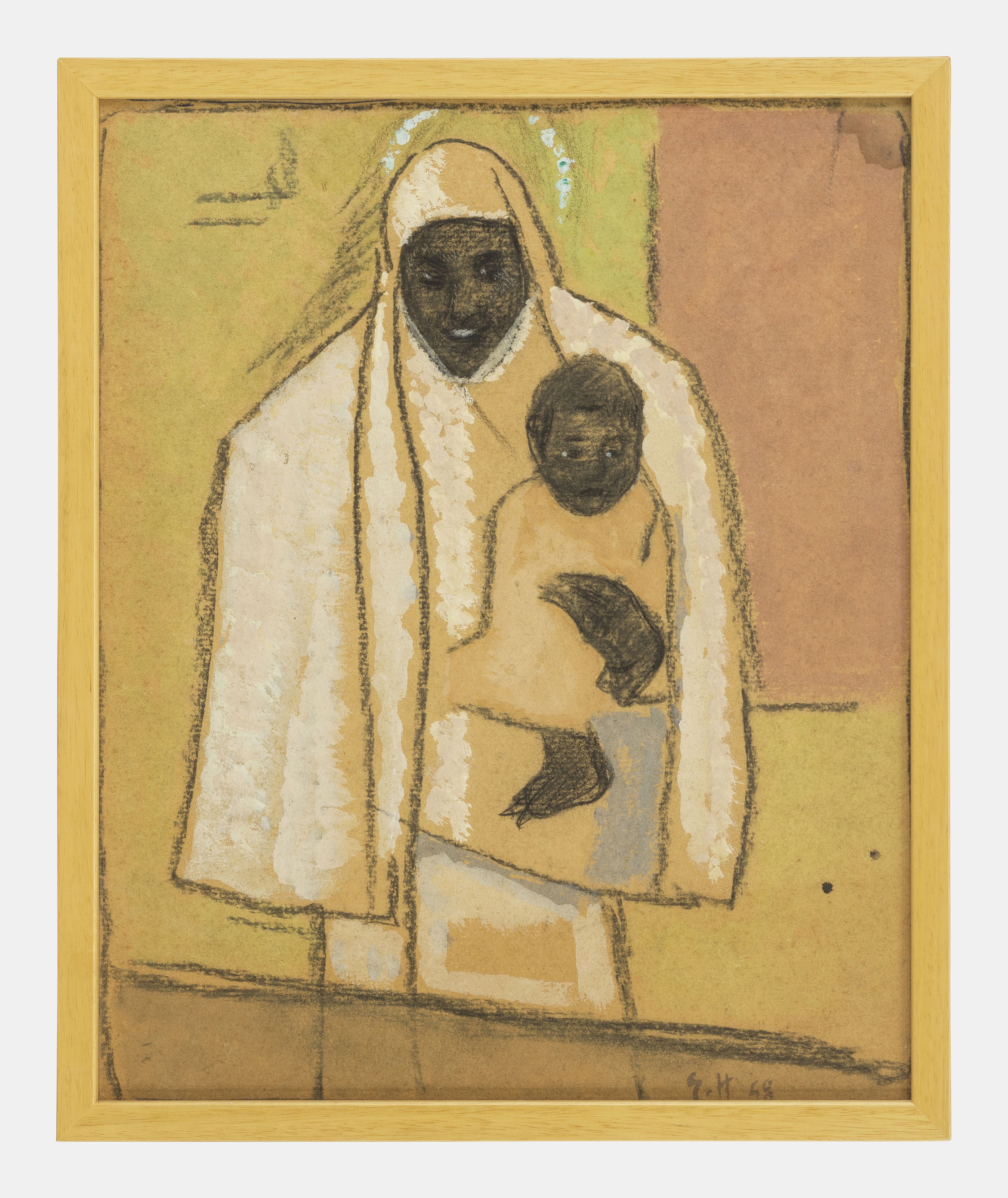 Nadia à la voilette, pastel sur papier, monogrammé, 41x46,5 cm