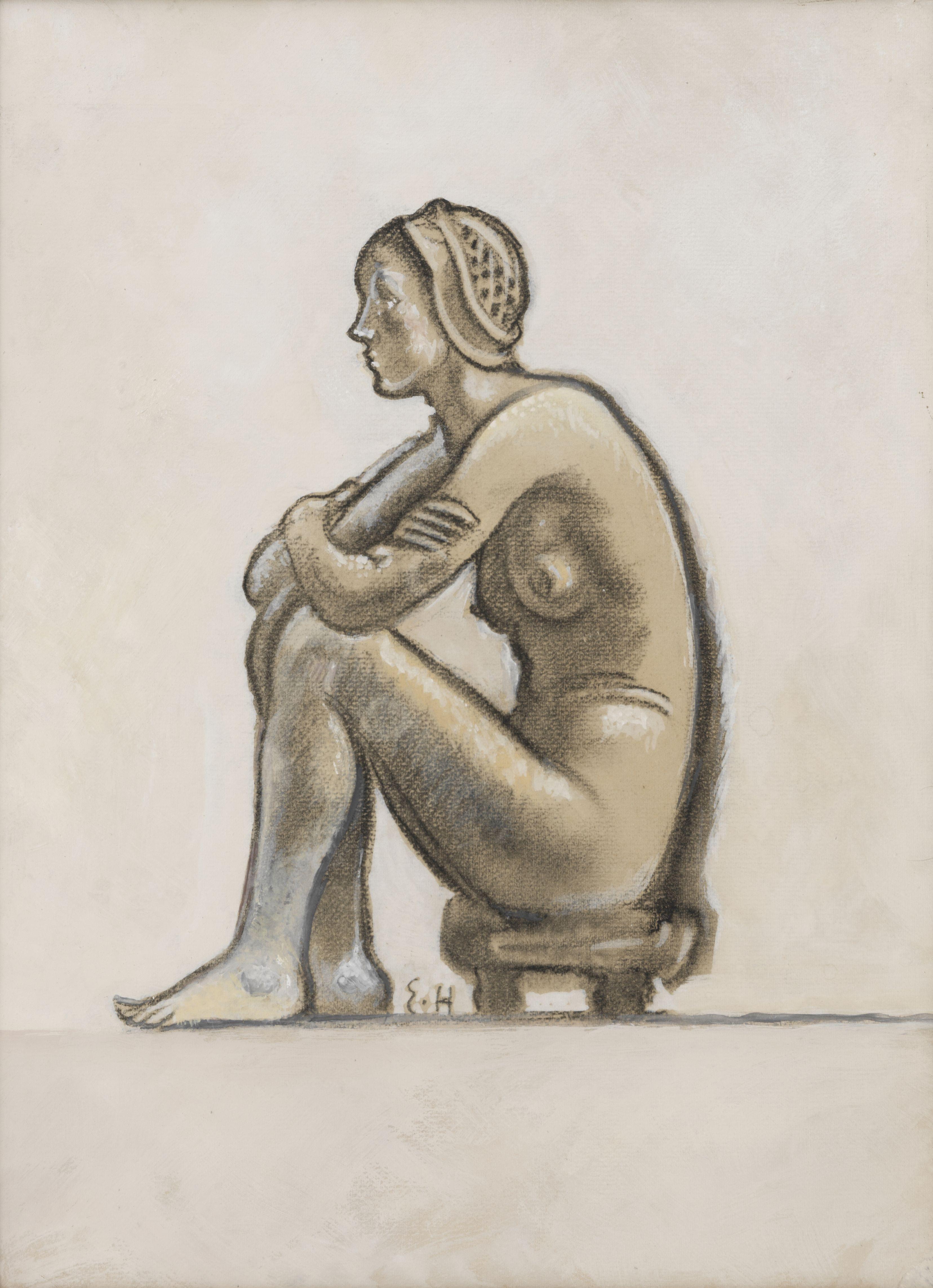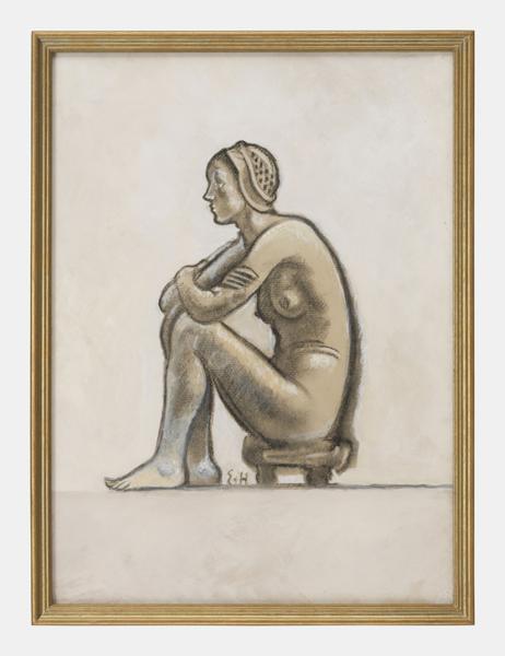 Femme assise, fusain et gouache sur papier, 41x30 cm