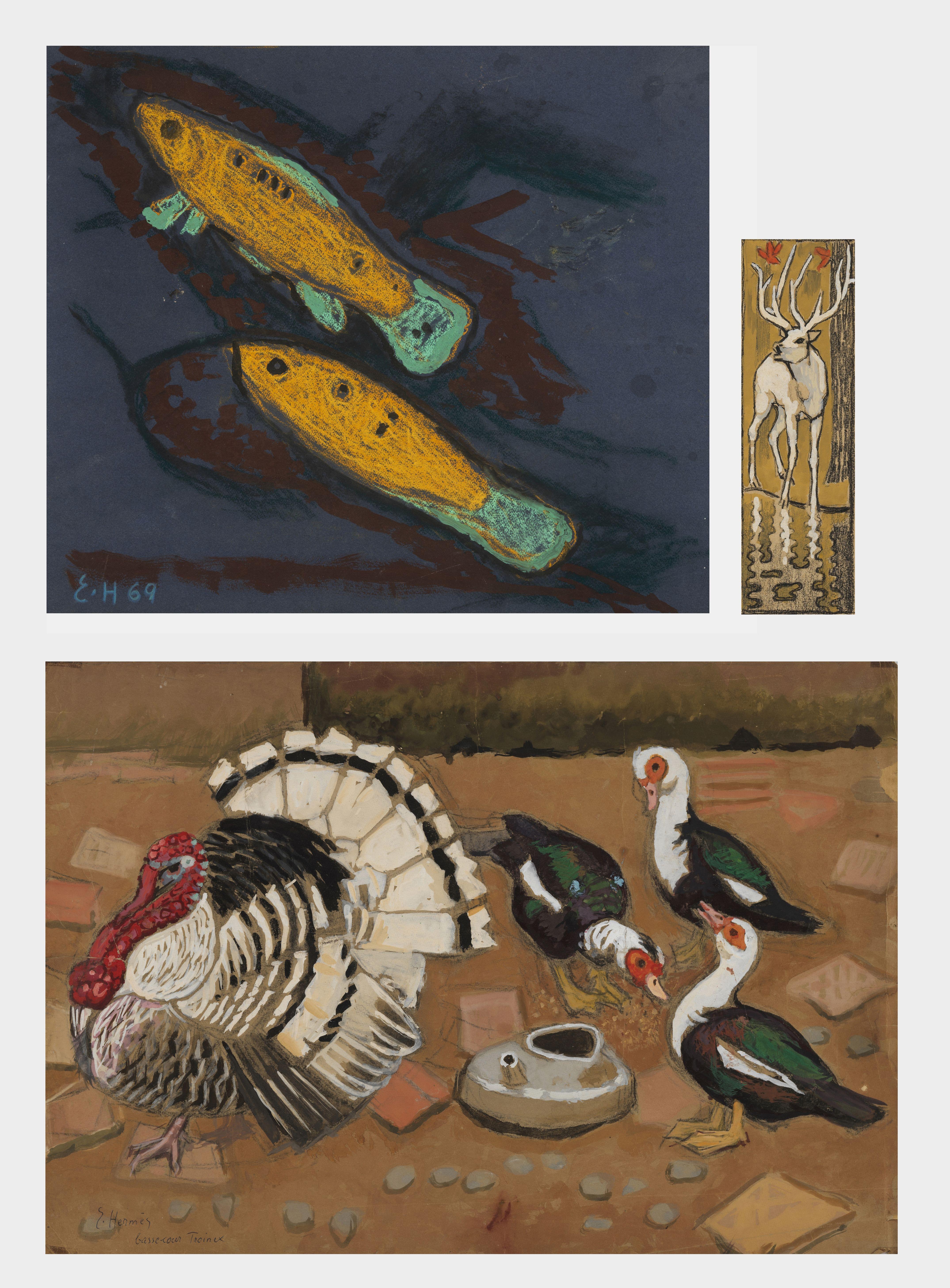 Ensemble de 25 dessins sur le thème des animaux, pastel, gouache et crayon sur papier, dim. de 23x12 à 48x62 cm