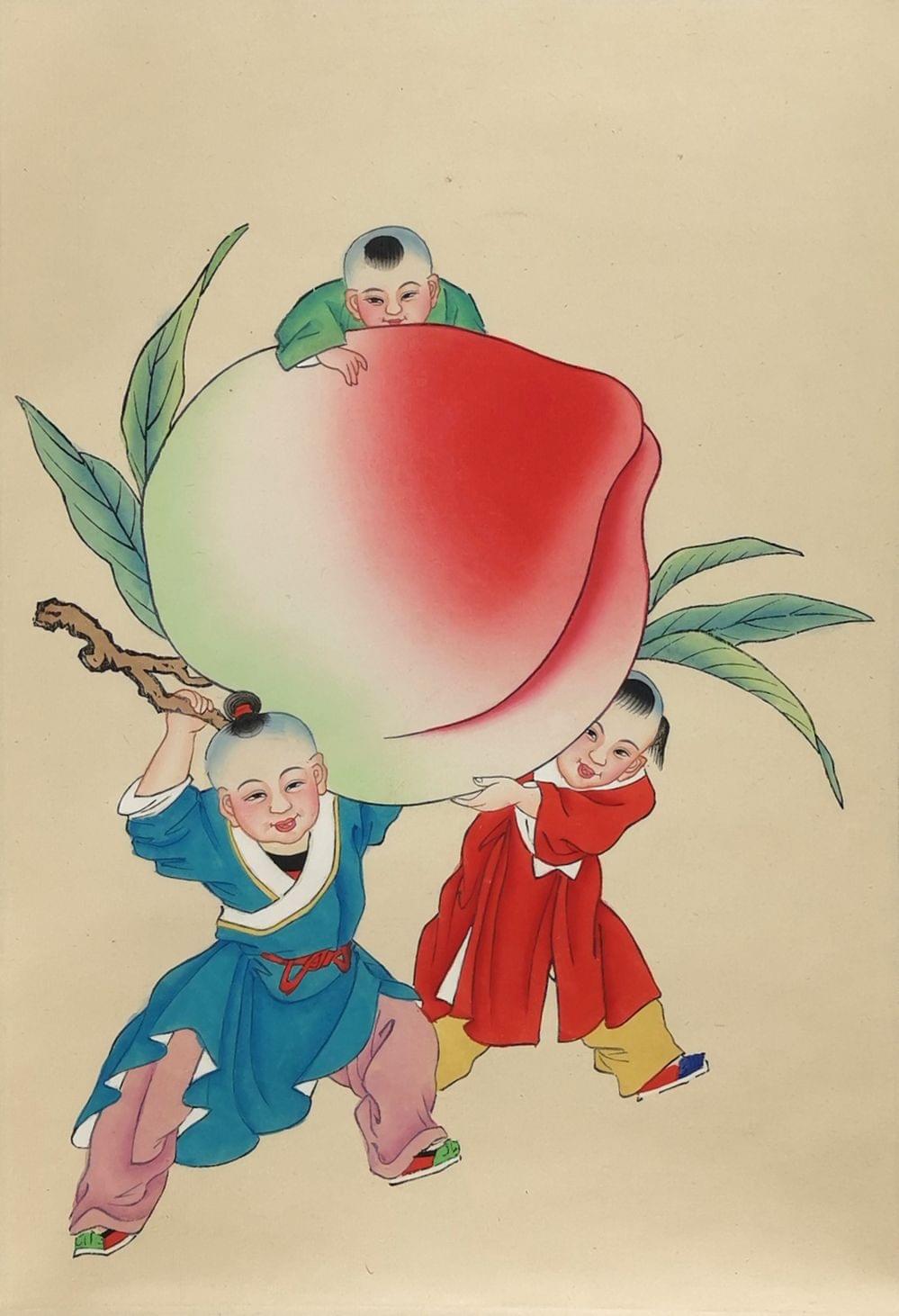 Porcelaine émaillée bleu blanc et rouge à décor d'enfants dans u...