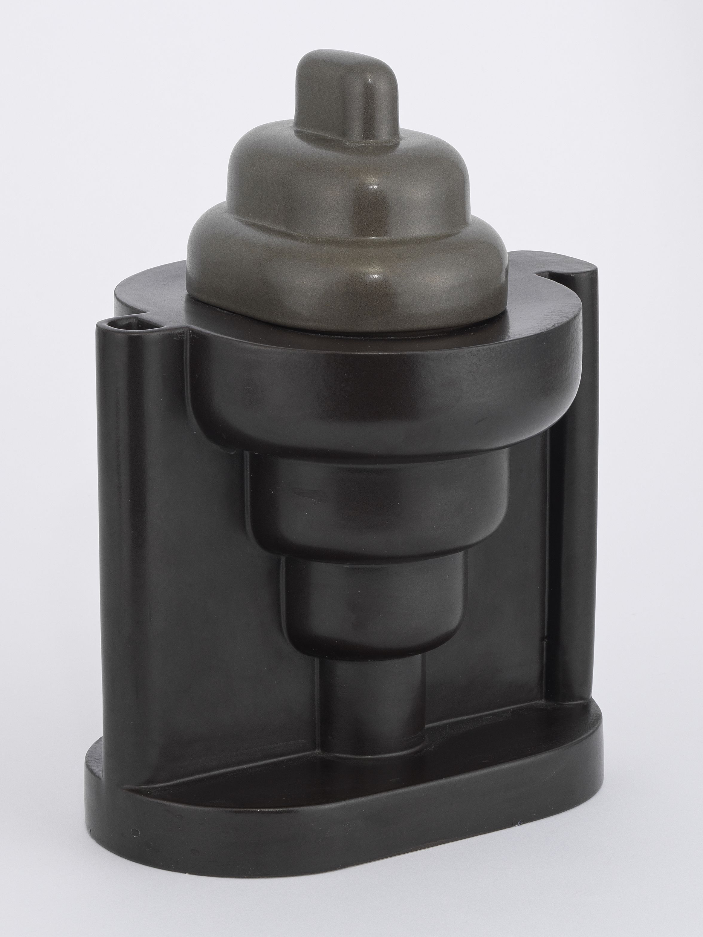 Théière Cardamon de la série Indian Memory, édition Alessio Sarri, faïence émaillée bicolore noir et brun, numérotée 6/88, cachet de l'éditeur, datée 1988, H 28 cm