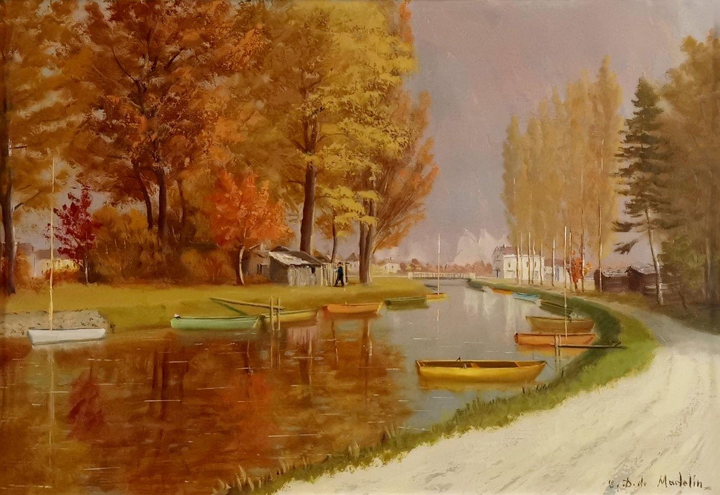 Hameau dans la campagne, huile sur toile, signée, 33x41 cm