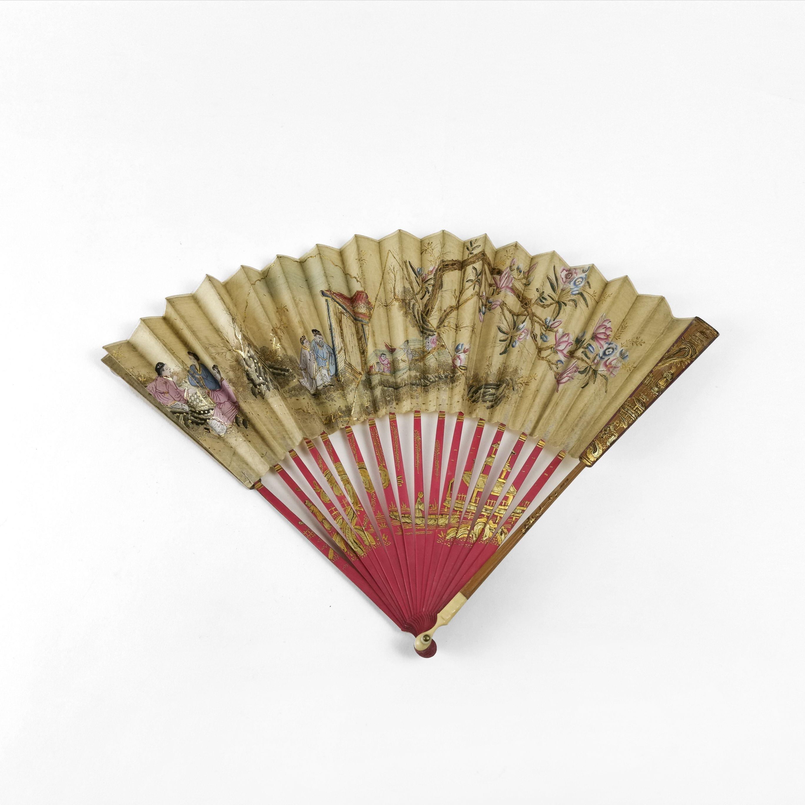 A décor de scènes animées dans des réserves, brins en bambou laqué noir et rose, L 27 cm
