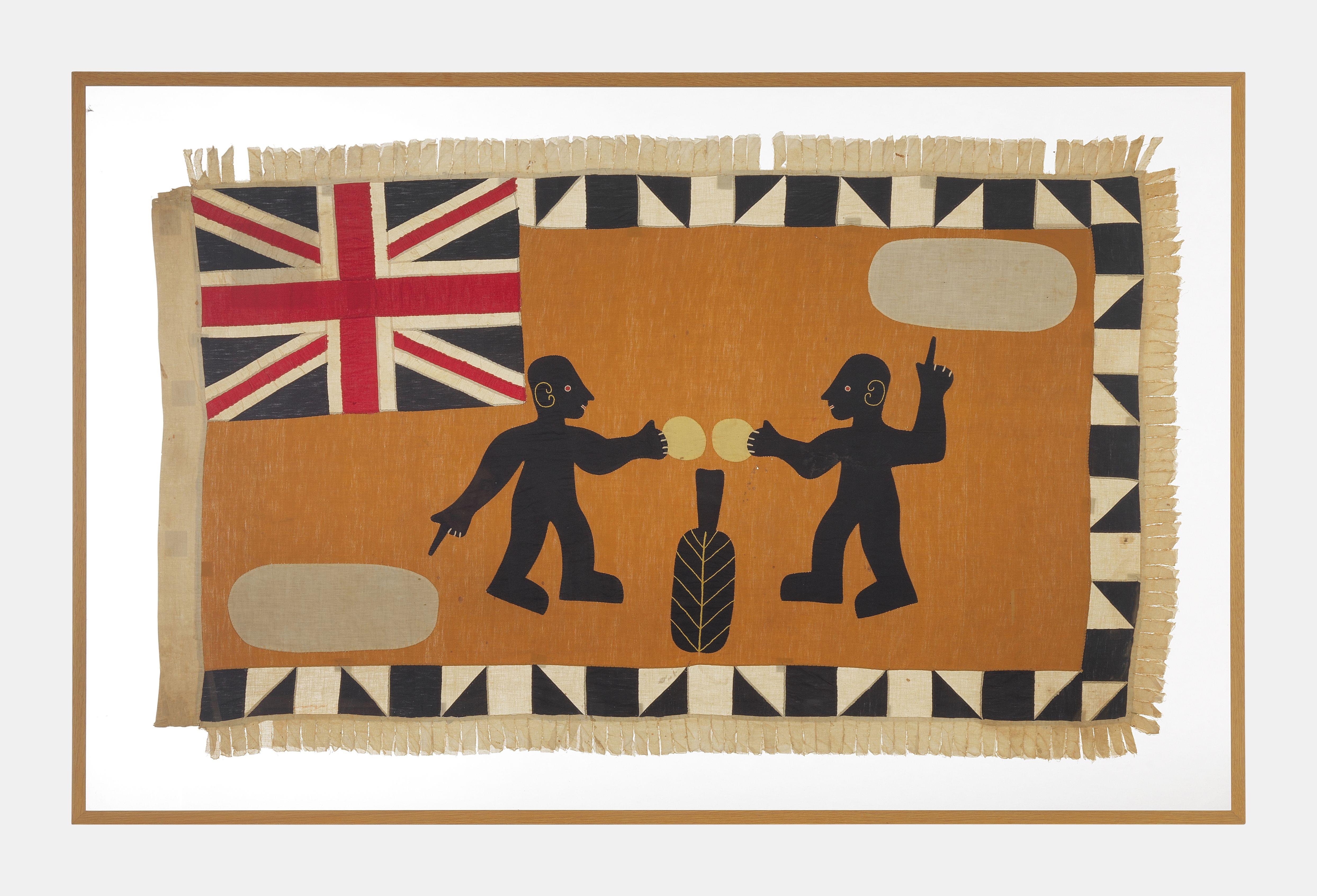 Allégorie à l'arbre, drapeau à décor de deux hommes et un arbre...