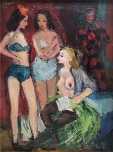 La cabine d’essayage du théâtre, huile sur toile, signée et daté...