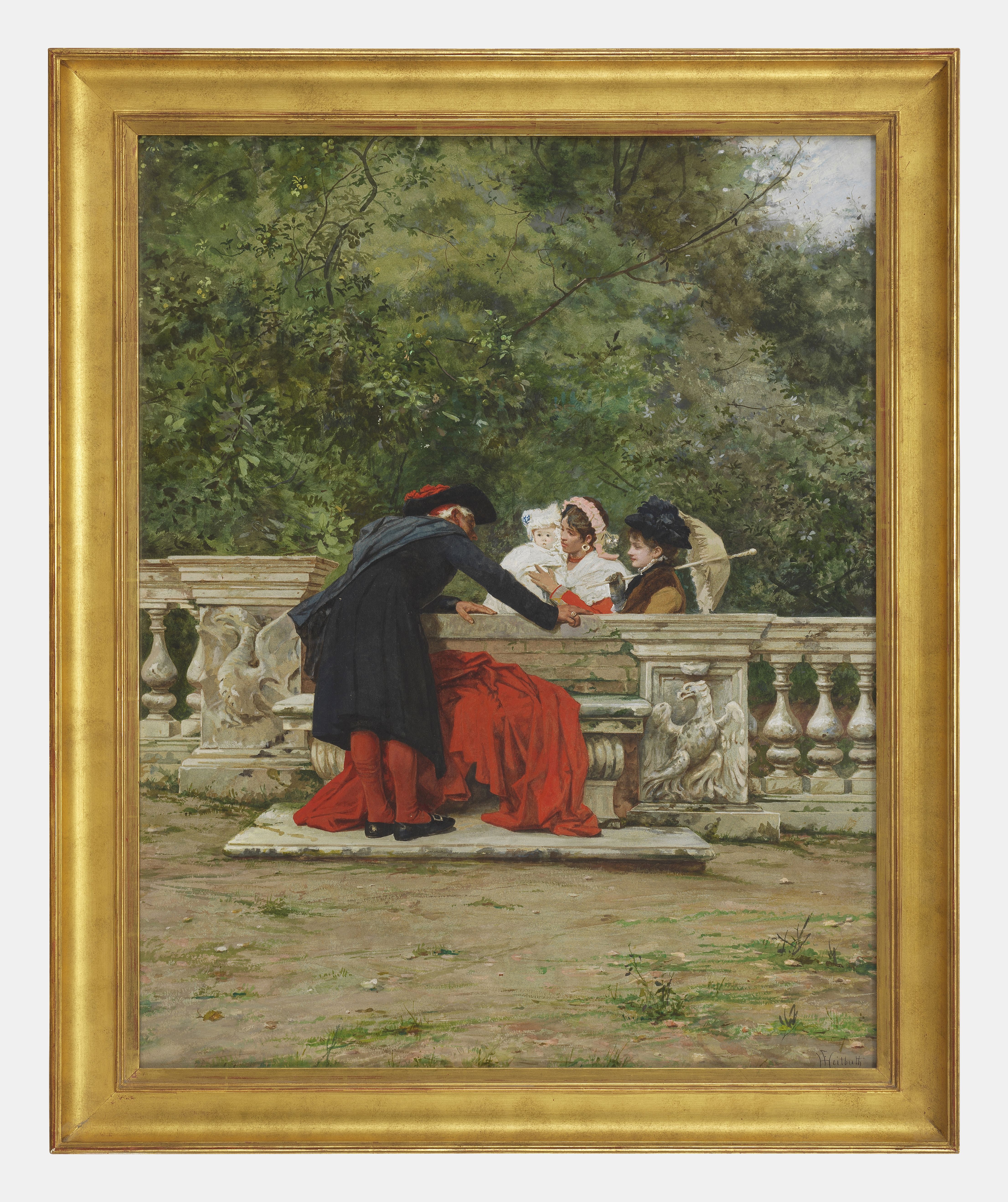Scène romantique en plein air, aquarelle, signée, 44x30,5 cm. Pr...