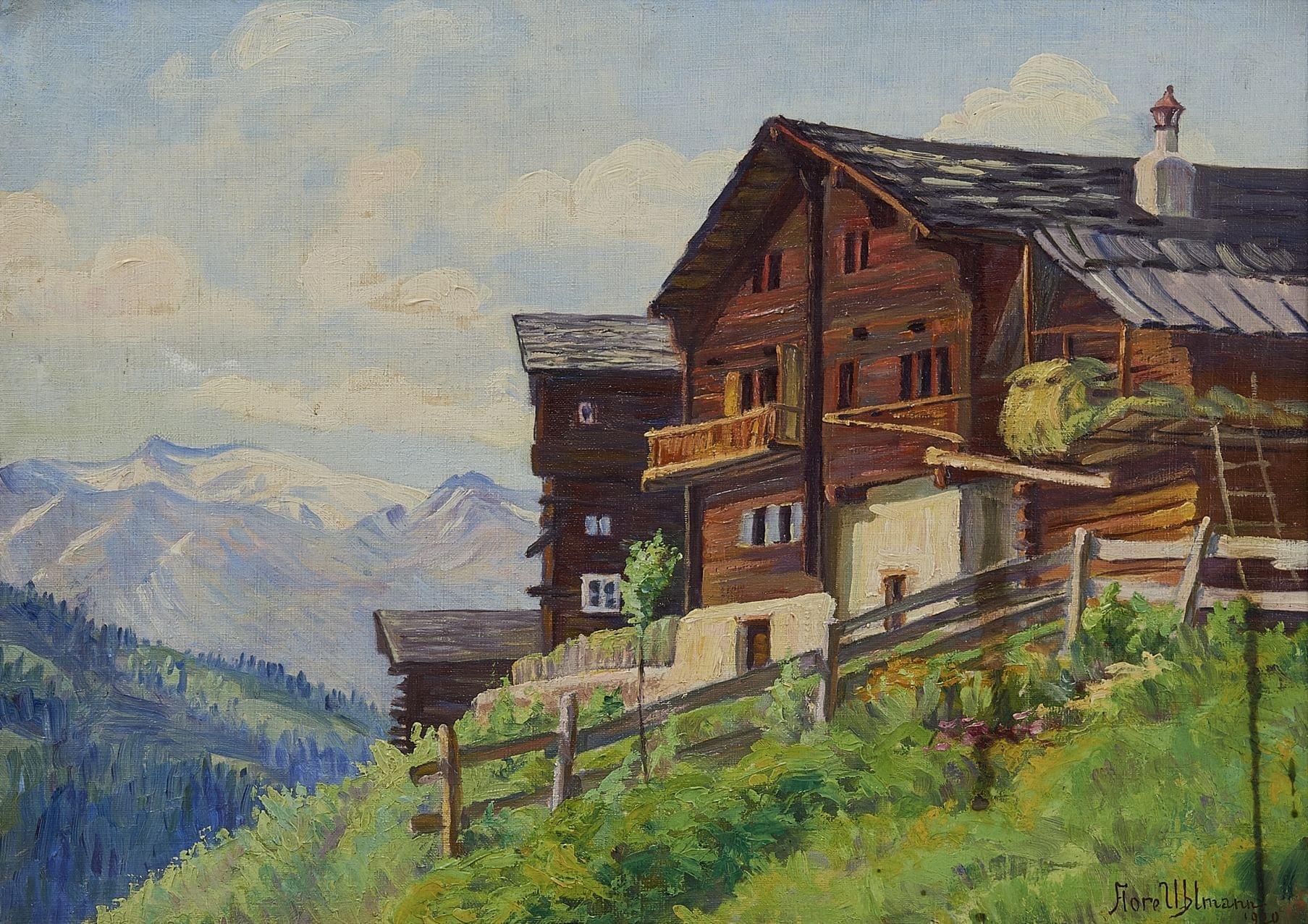 Saint-Luc, Val d'Anniviers, huile sur toile, signée et datée 1920, 33x46 cm