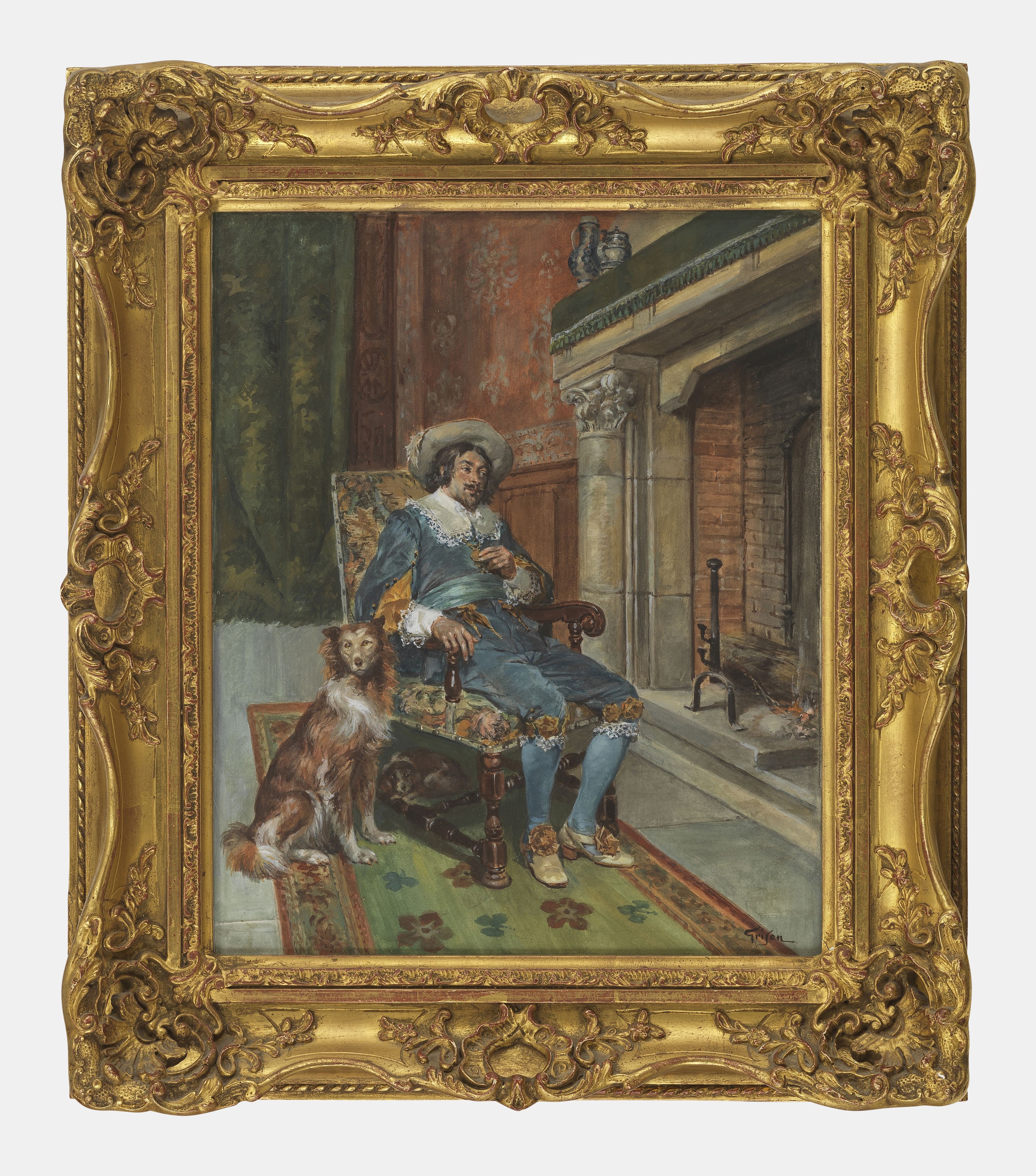 En attendant devant le foyer, gouache sur papier, signée, 30x26 cm