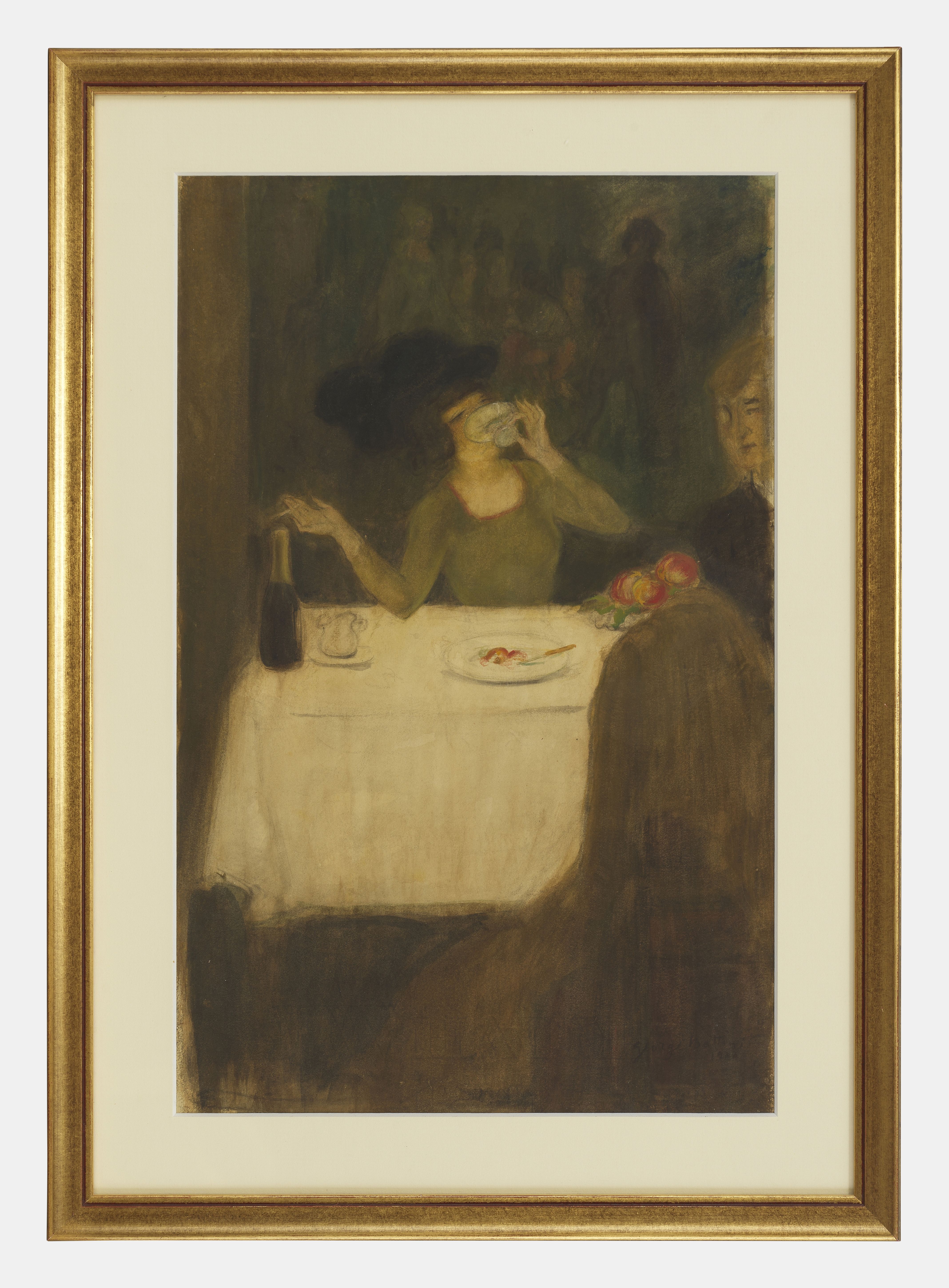 Abstraction cubiste, gouache sur papier, signée, 38x23 cm