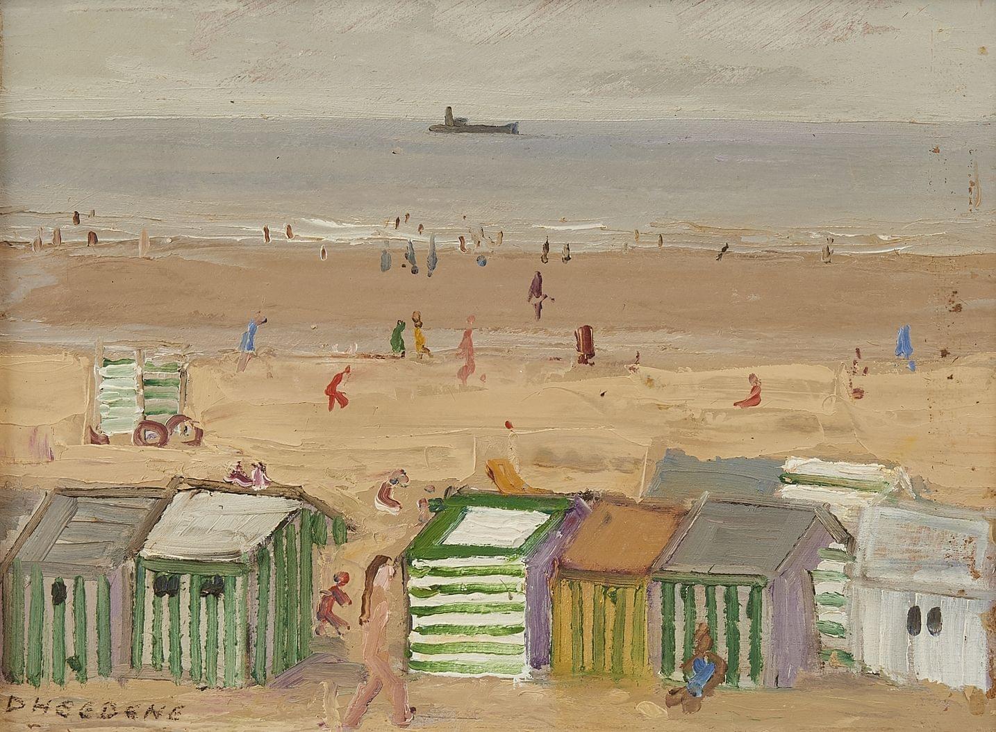 La plage, huile sur carton, signée, 26x35 cm