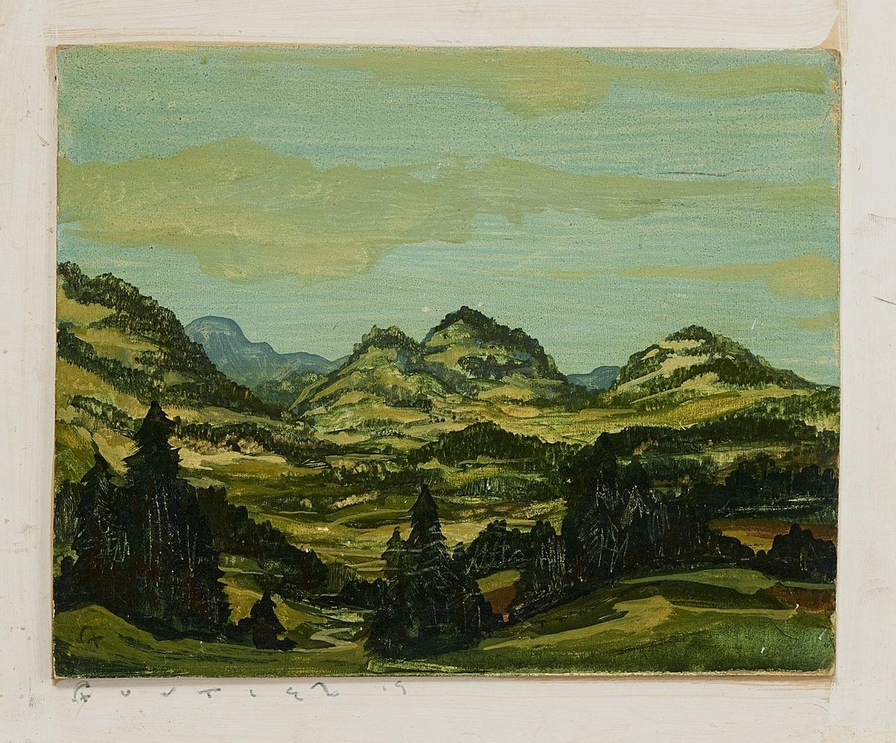 Paysage de montagne, huile sur panneau, monogrammée, signée et datée 19 sur le cadre, 22x28 cm