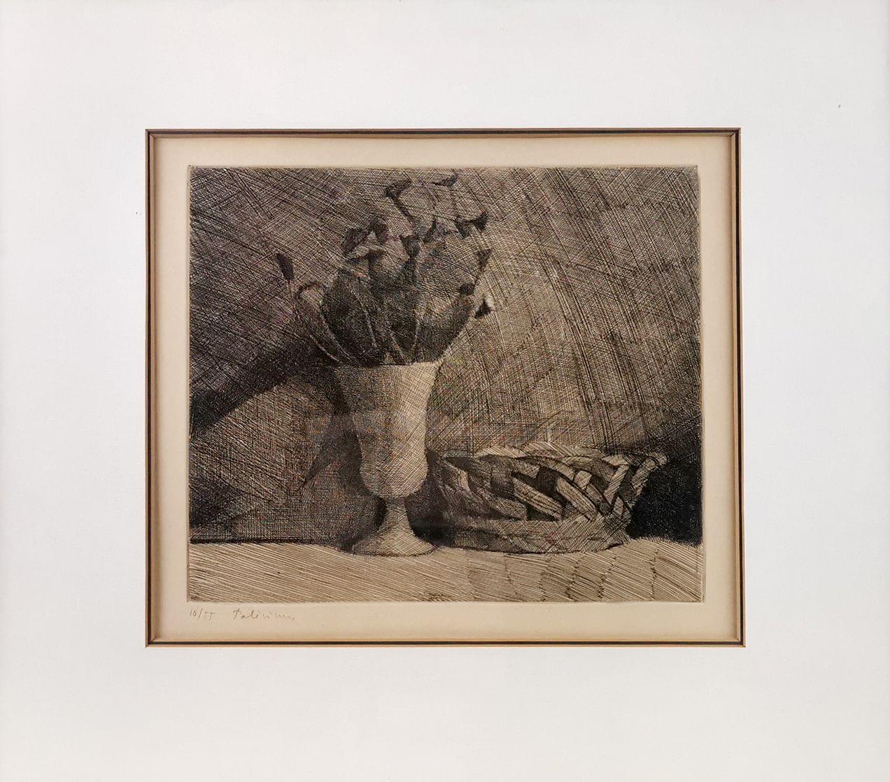 Nature morte au panier, eau-forte, numérotée 10/55, signée, 22x25 cm