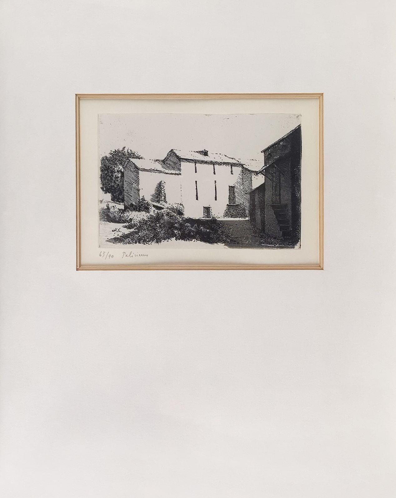 Maison ancienne, eau-forte, numérotée 63/90, signée, 17x23 cm