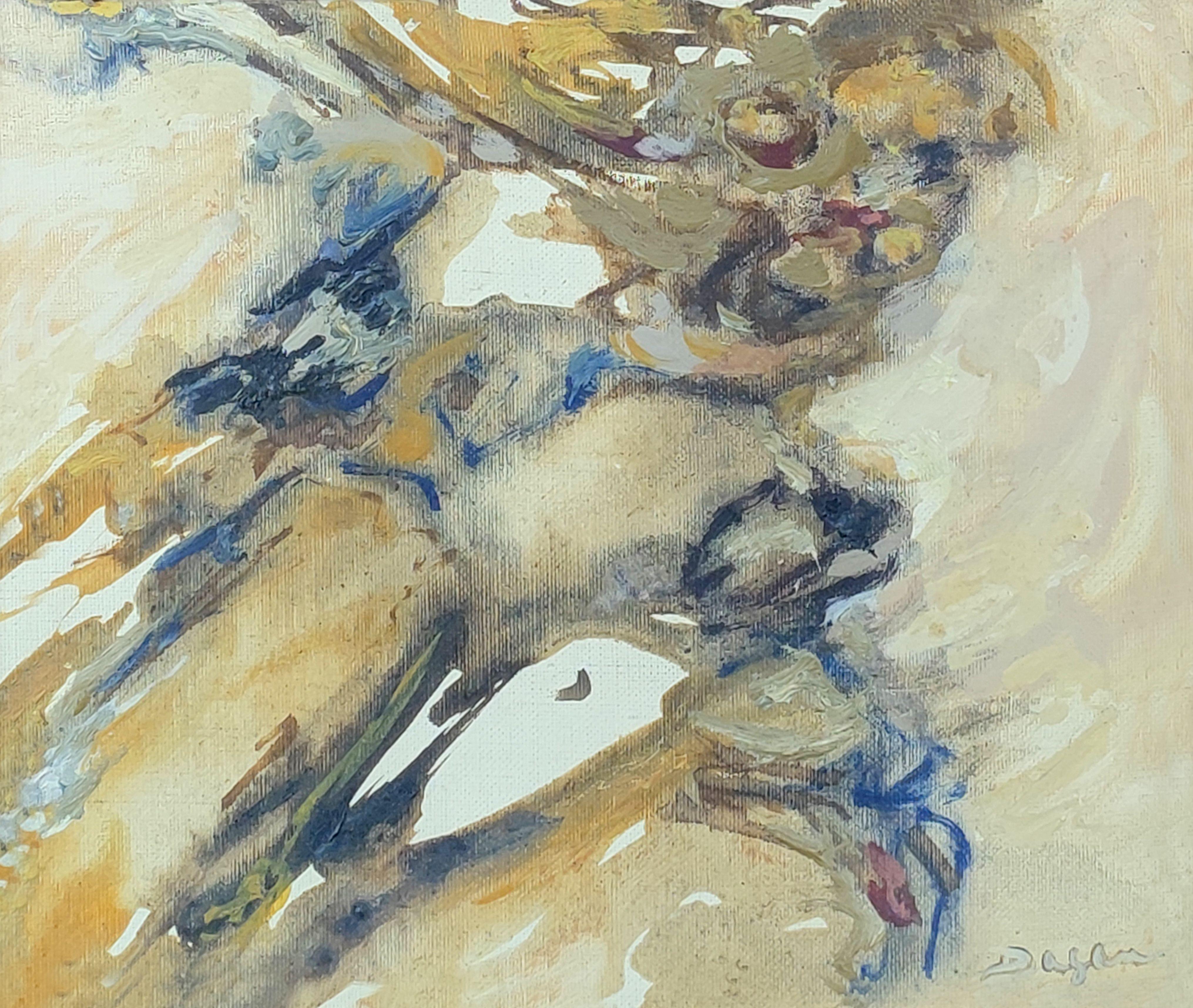 Algues, huile sur toile, signée et datée 1962 au dos, 22x26 cm