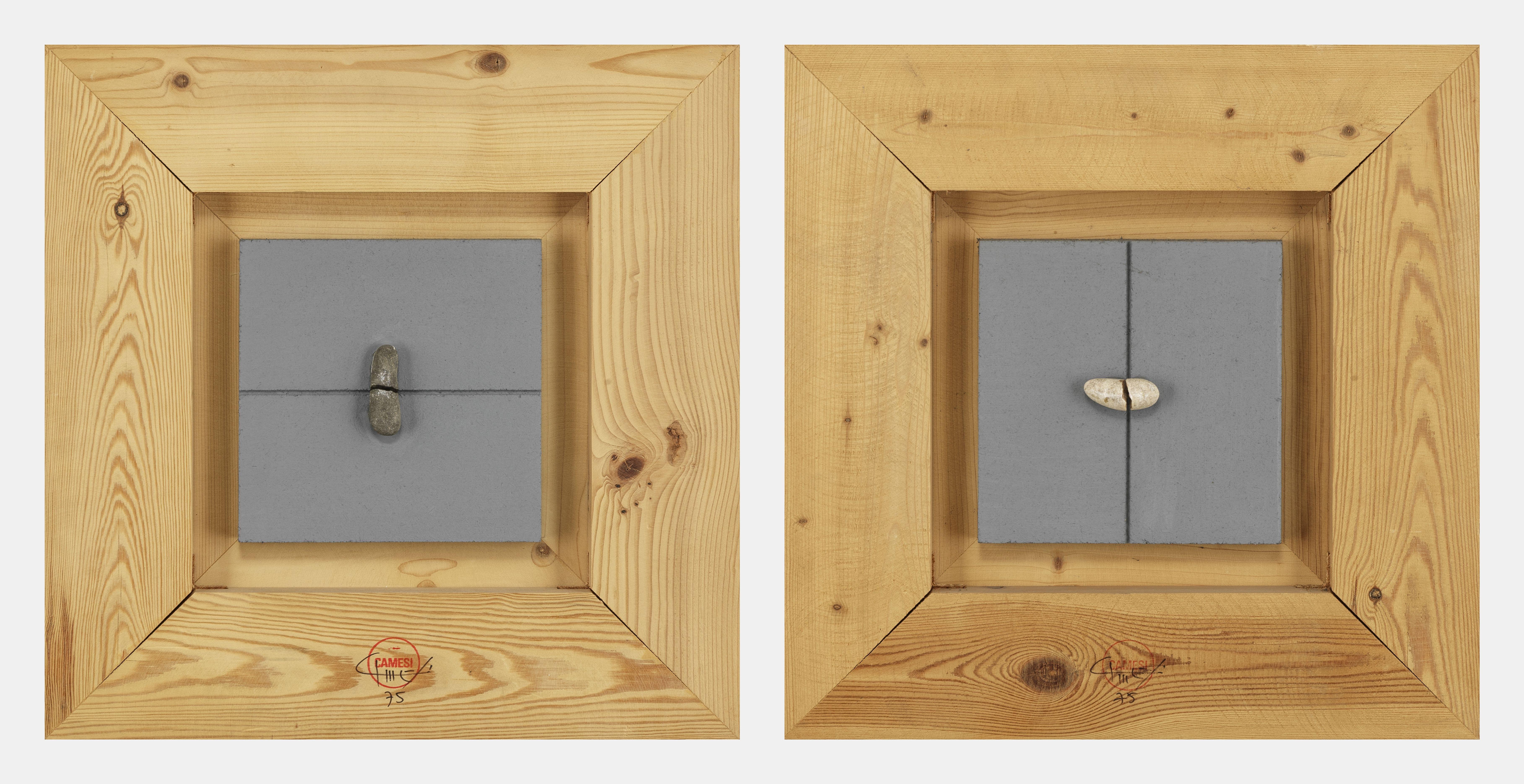 Quatre assemblages, fils tendus, tranches de bois collés sur sup...