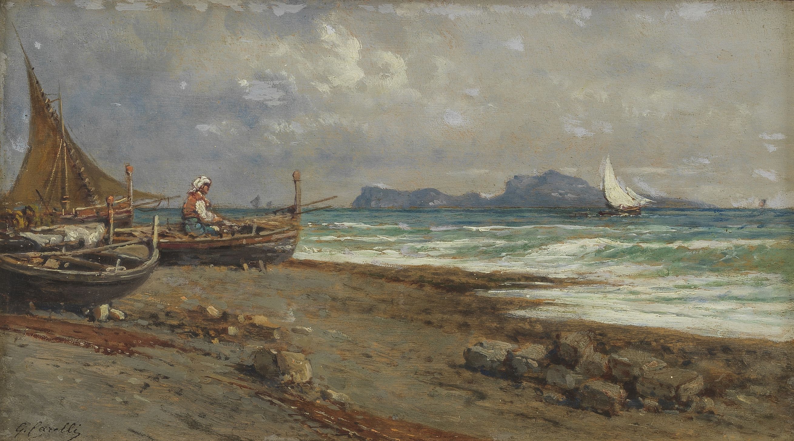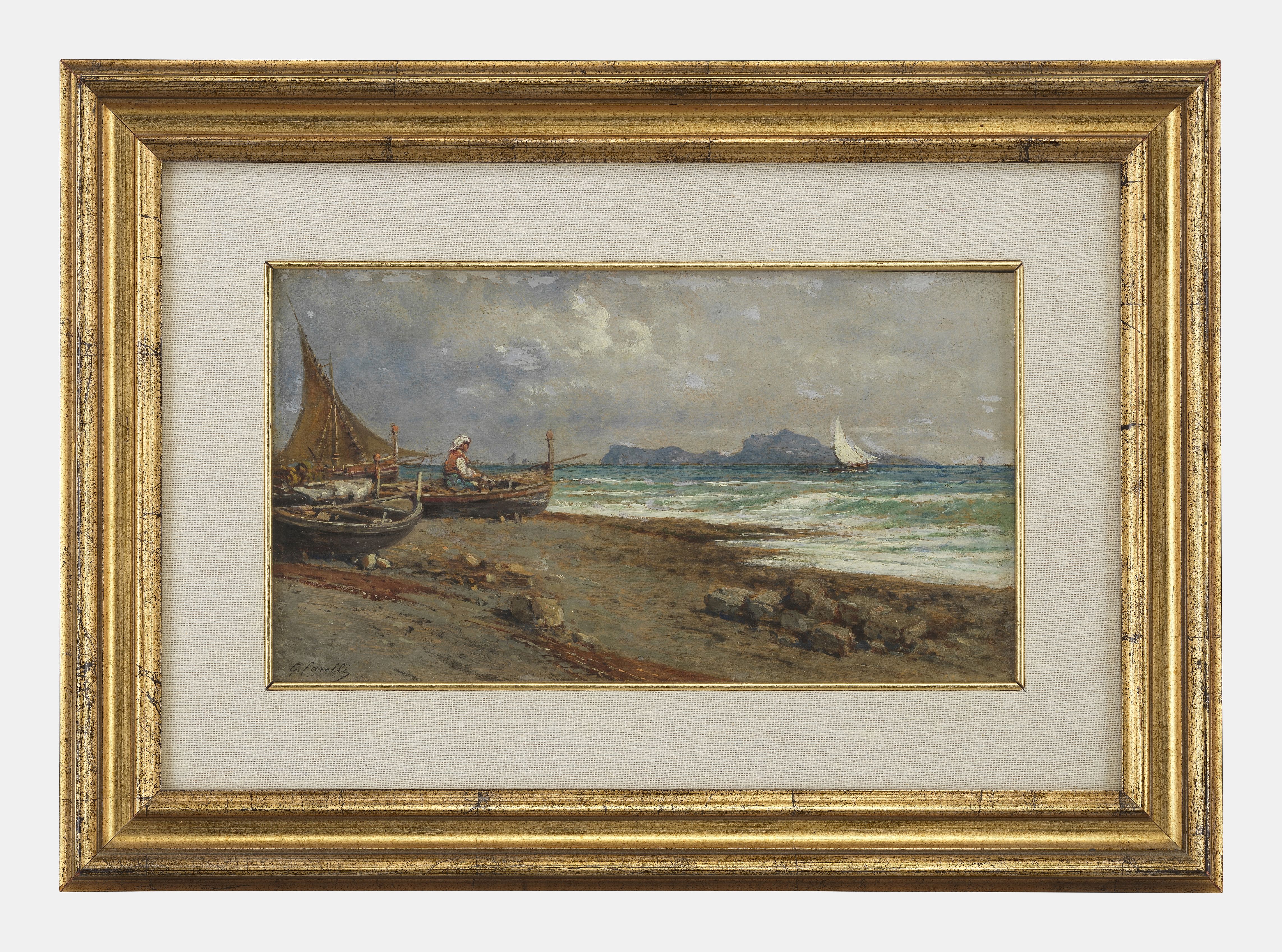 Famille de pêcheur au bord de la mer, gouache sur papier, signée...
