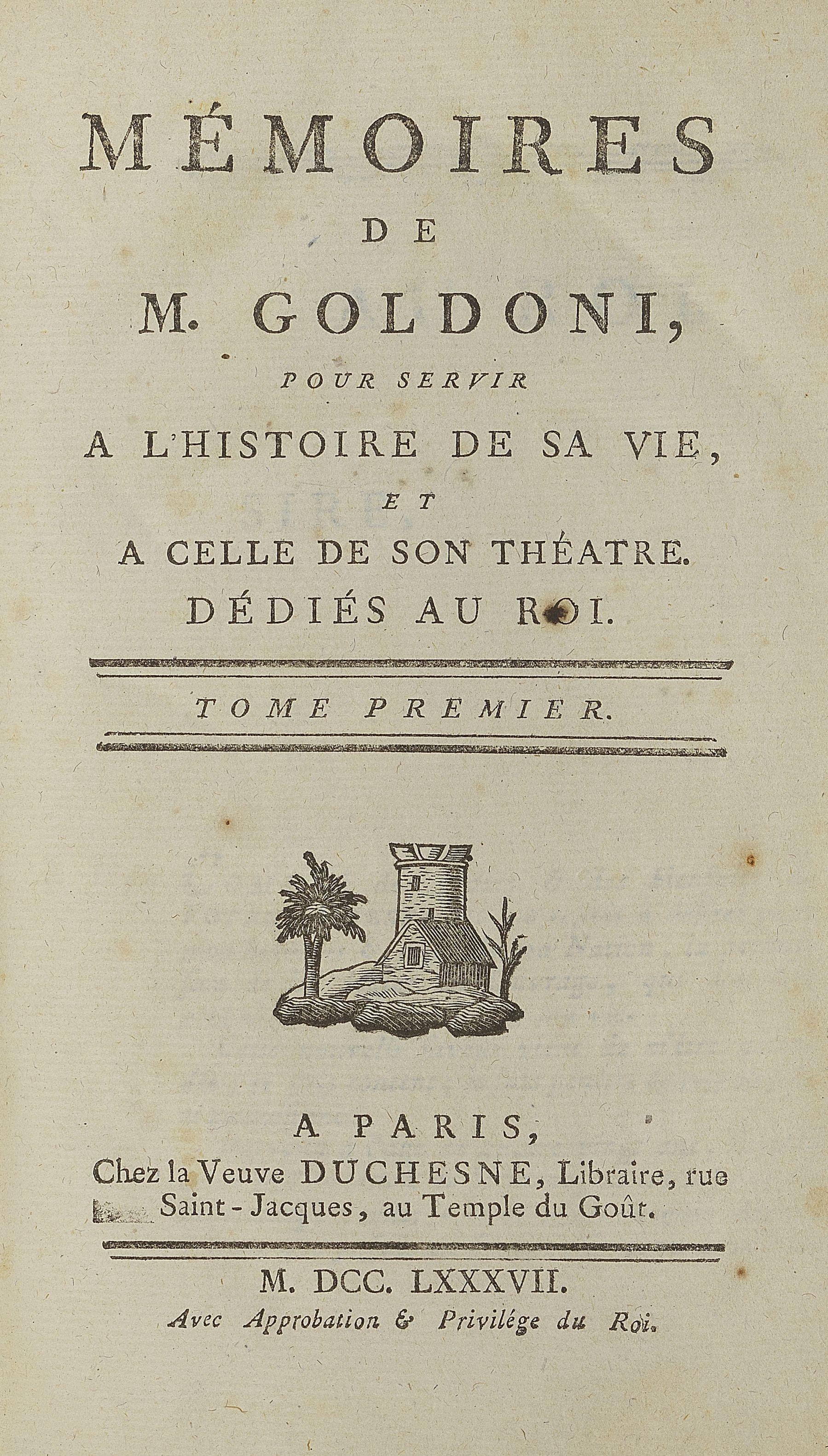 4425. GOLDONI (Carlo) : Mémoires... Paris, Veuve Duchesne, 1787 ;