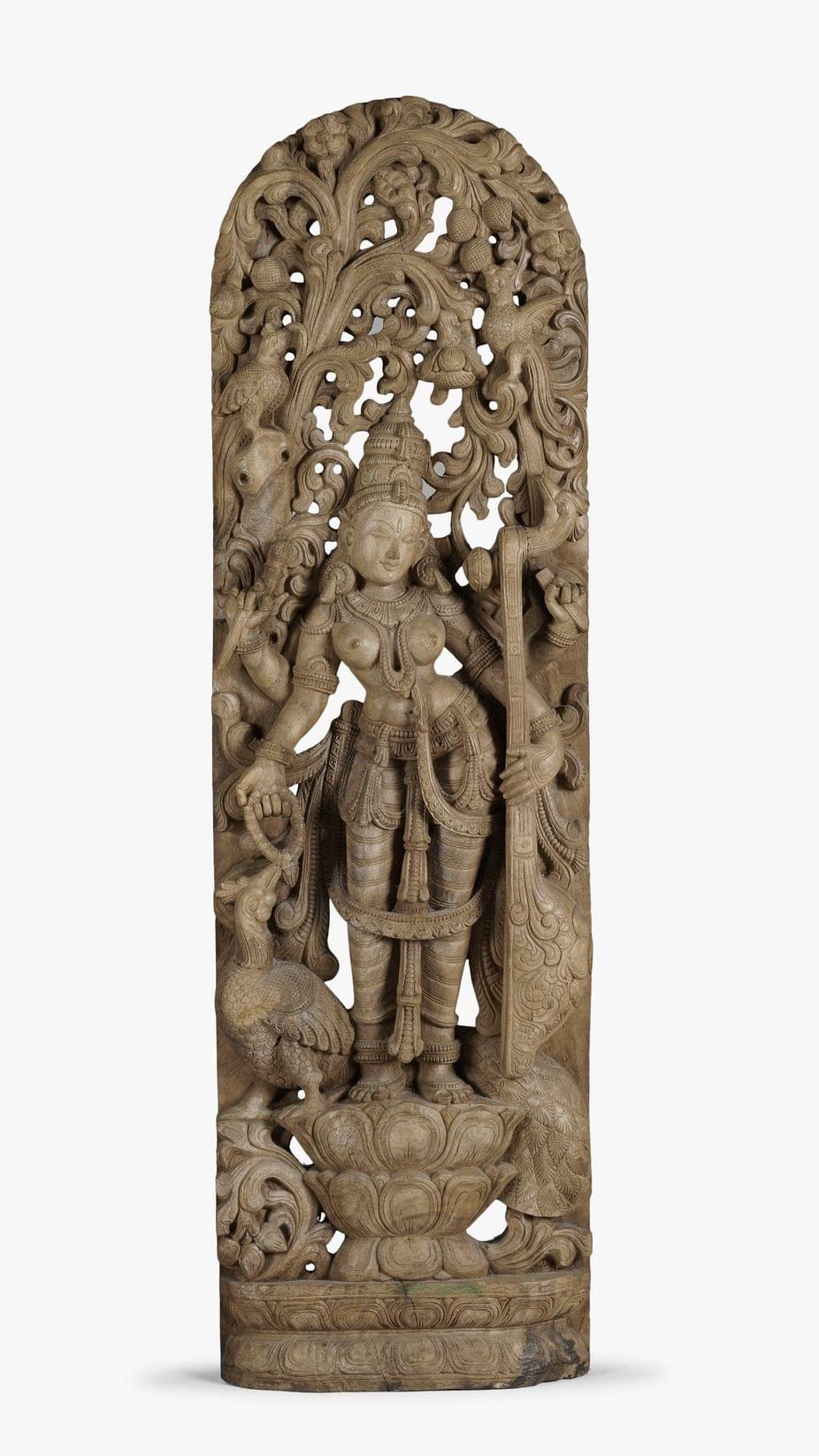 3522. Grand bas-relief cintré à décor d'une divinité hindoue, Inde, XXe s