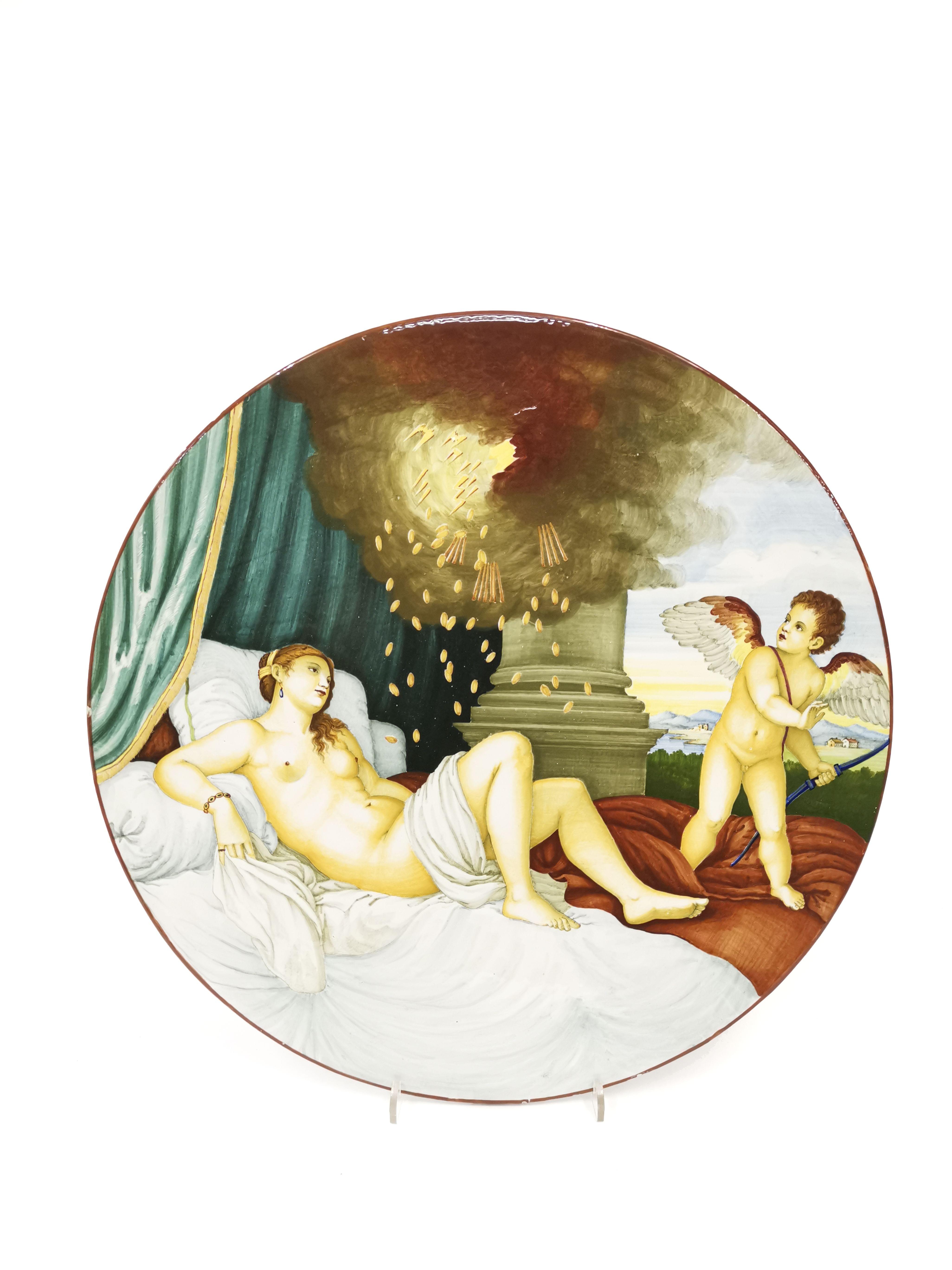 3910. Grand plat à décor de Danaé d'après Le Titien