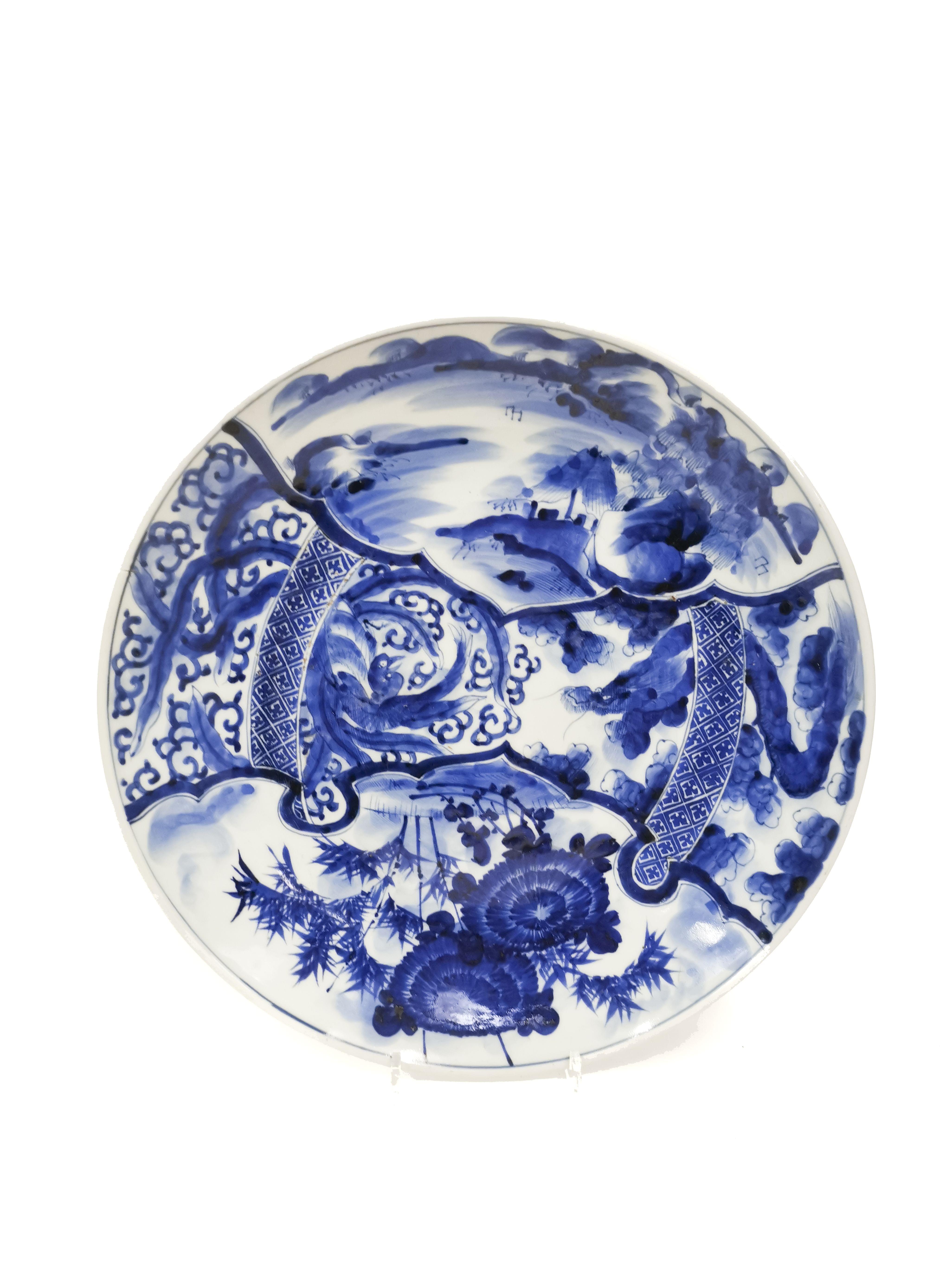 Porcelaine bleu blanc, à décor de fleurs, D 39 cm