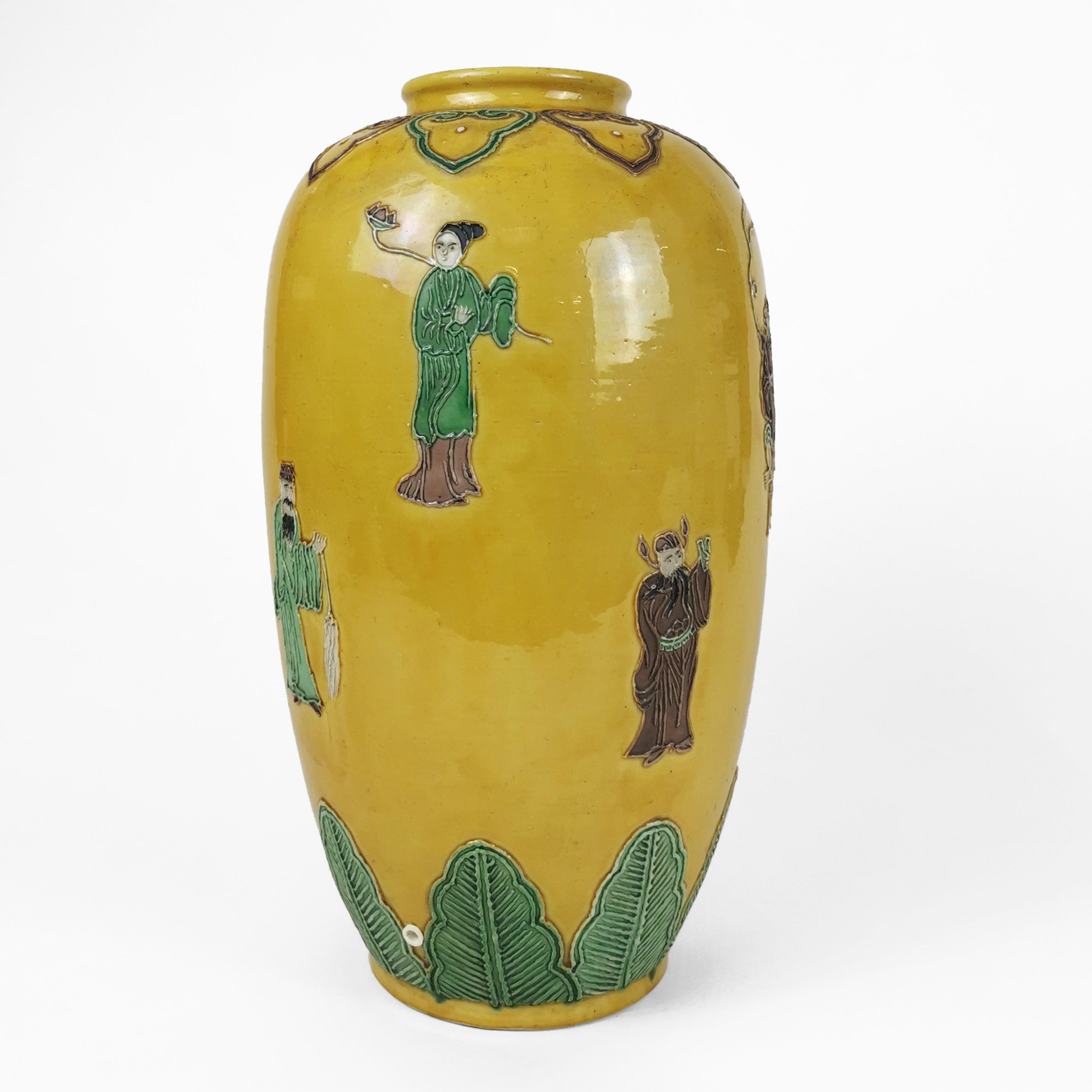 Porcelaine émaillée sancai à décor de personnages, percé à l'élecricité, H 39 cm