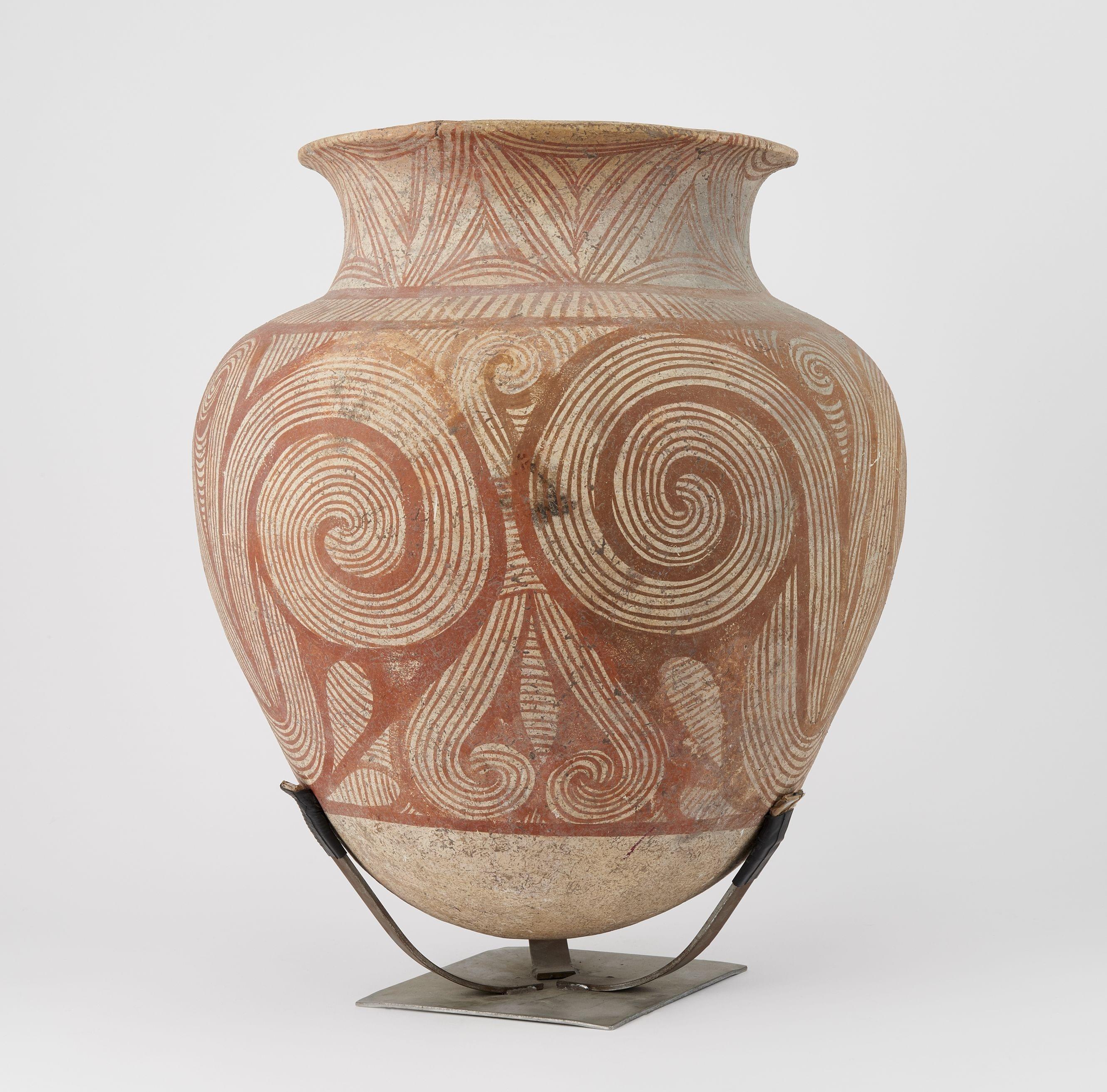 Terre cuite à décor de tourbillons à l'engobe rouge, H 52 cm