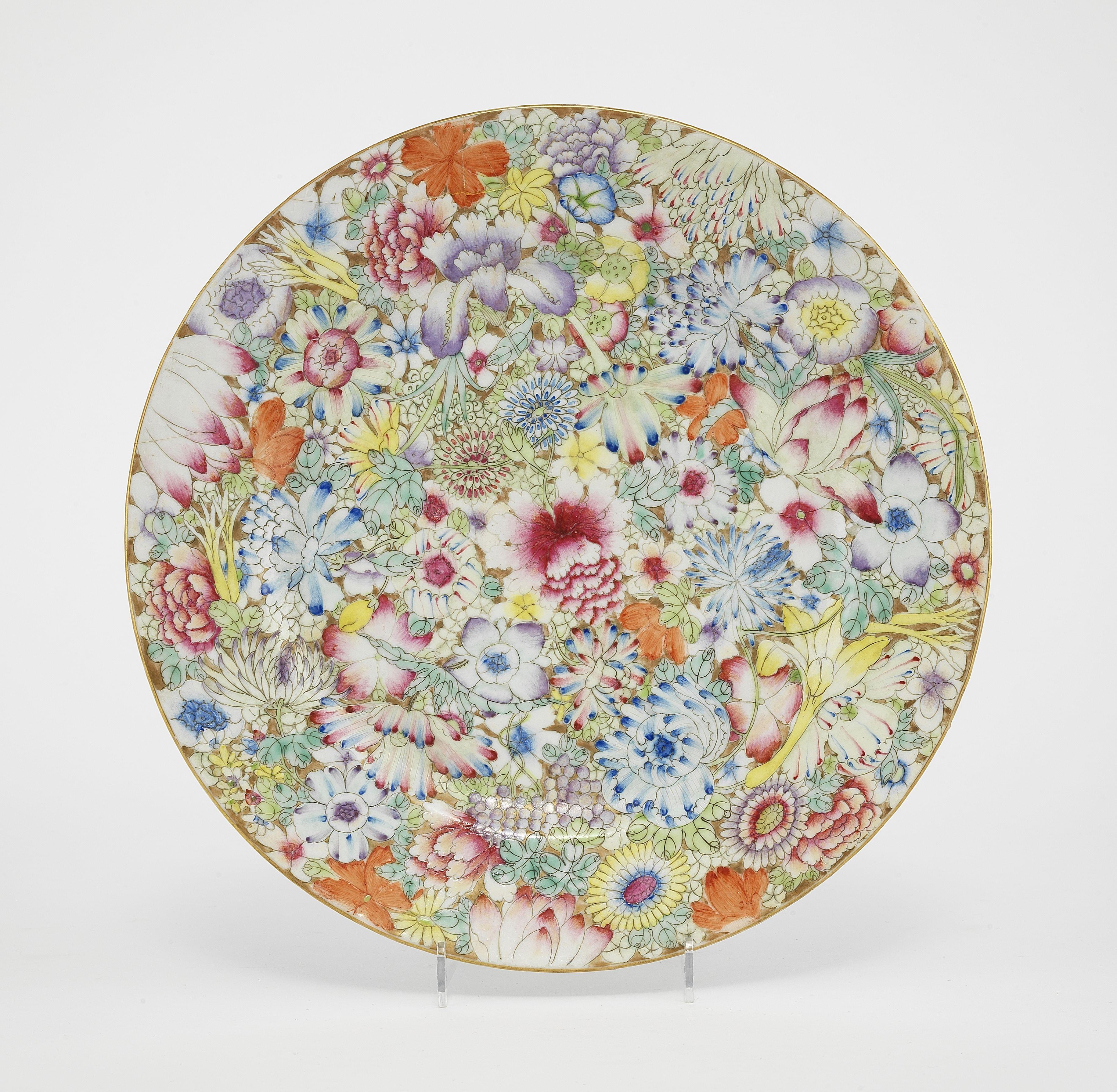 4655. Grande assiette millefiori, Chine, marque et période Guangxu (1875-1908)
