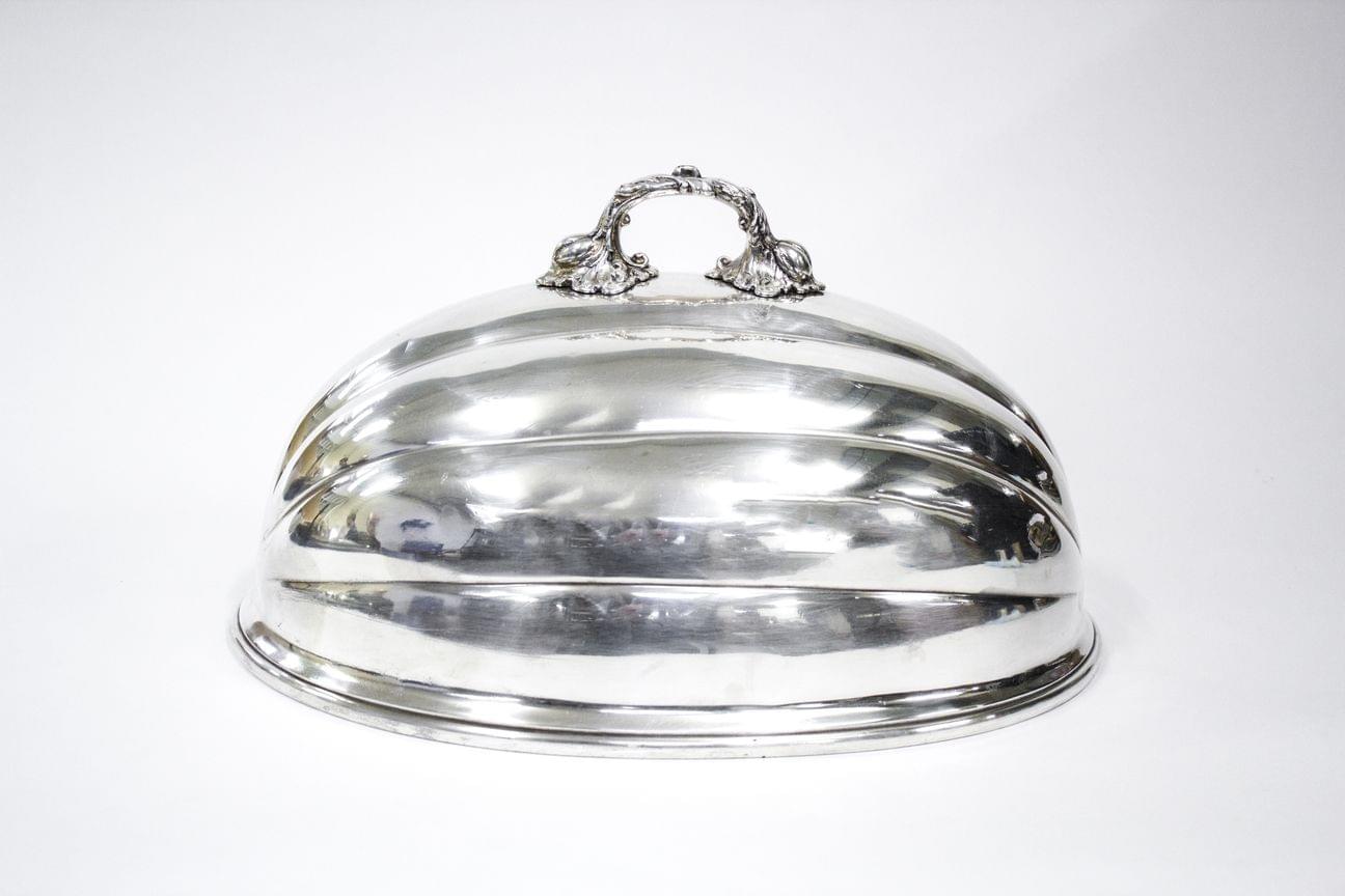 155. Ecuelle ovale couverte sur présentoir de style Louis XV à bordur...