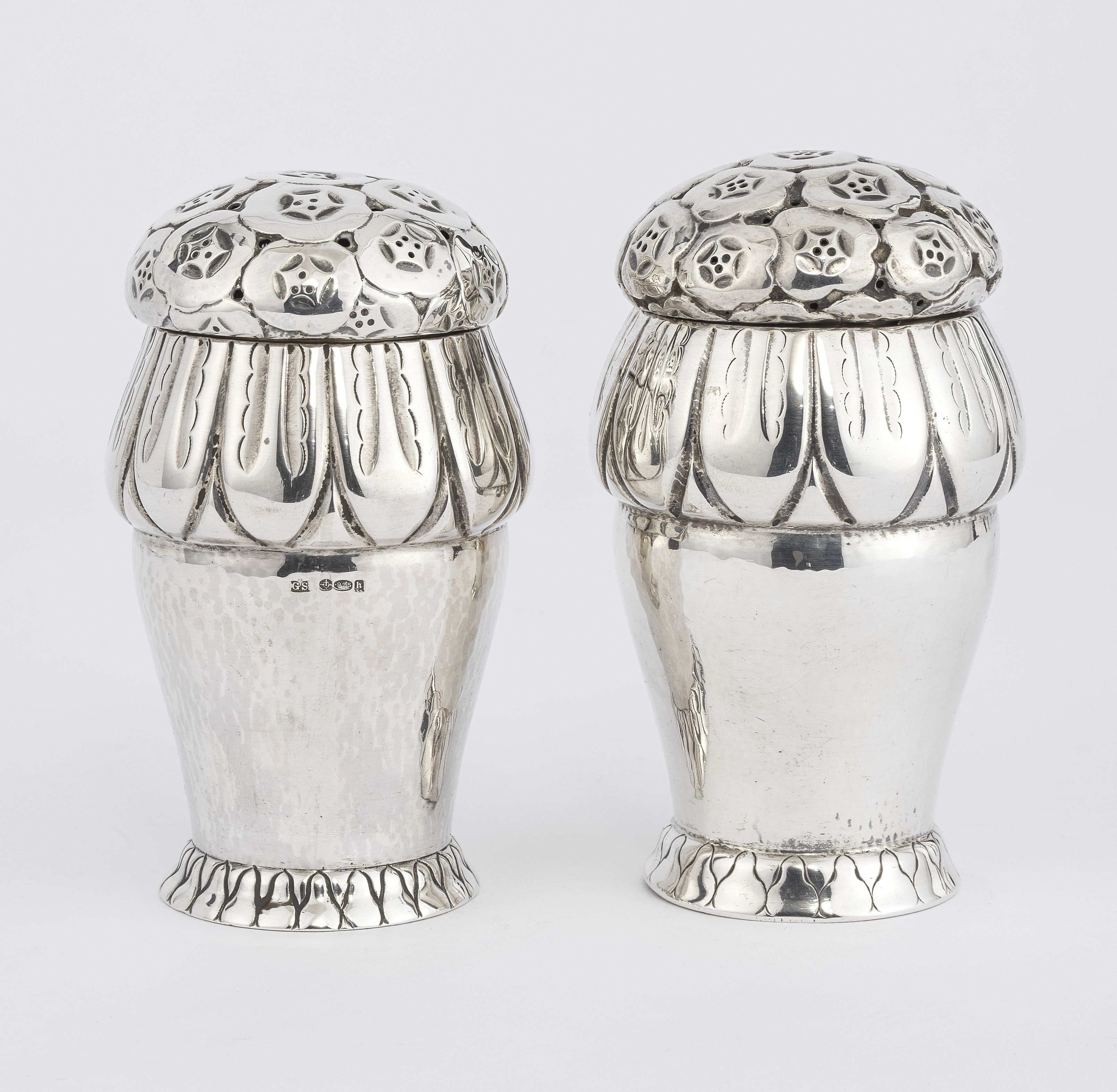 3647. Deux saupoudroirs à motif ajouré de fleurs formant paire
