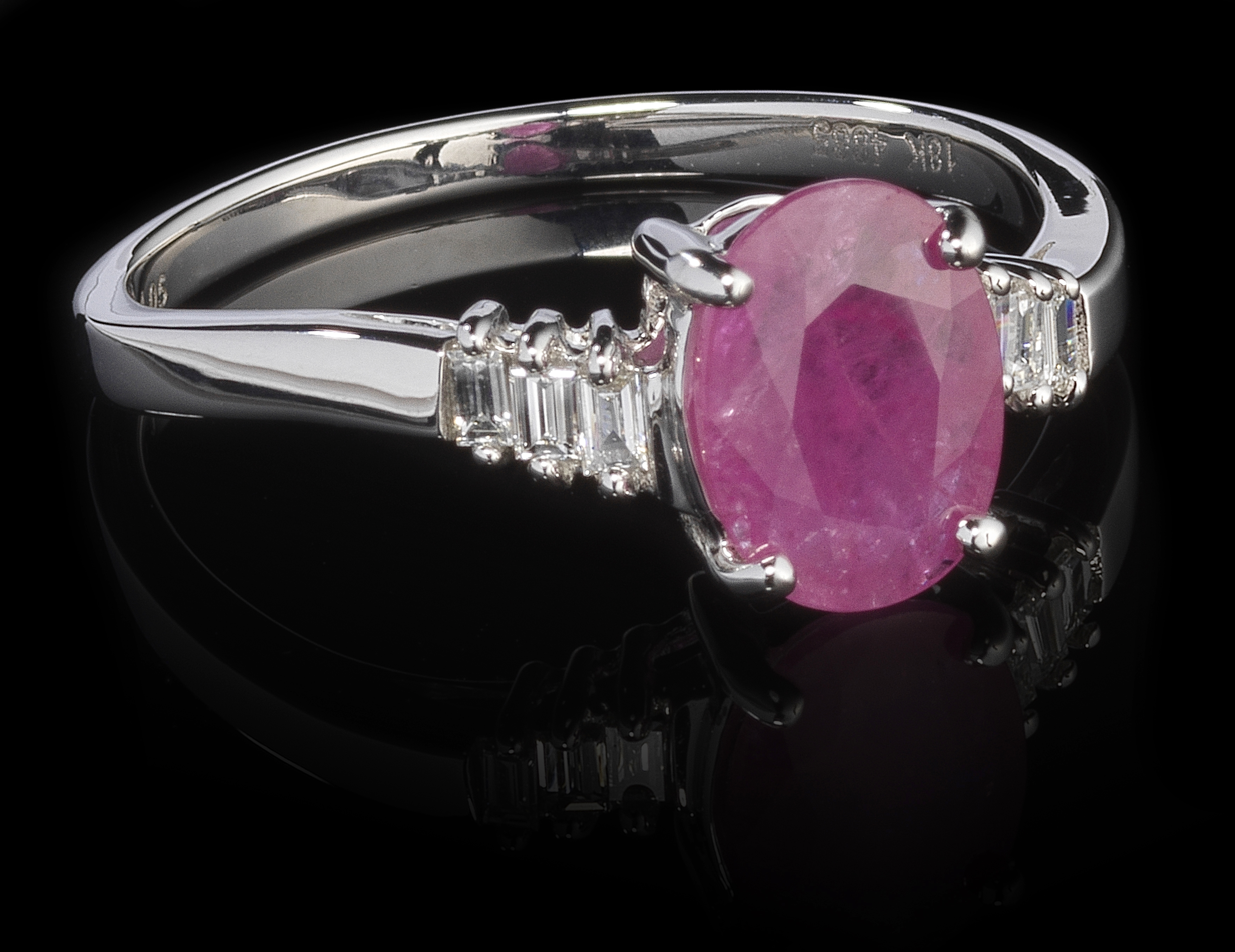 4441. Bague sertie d'un rubis taille ovale (env. 1,05 ct) épaulé de di...