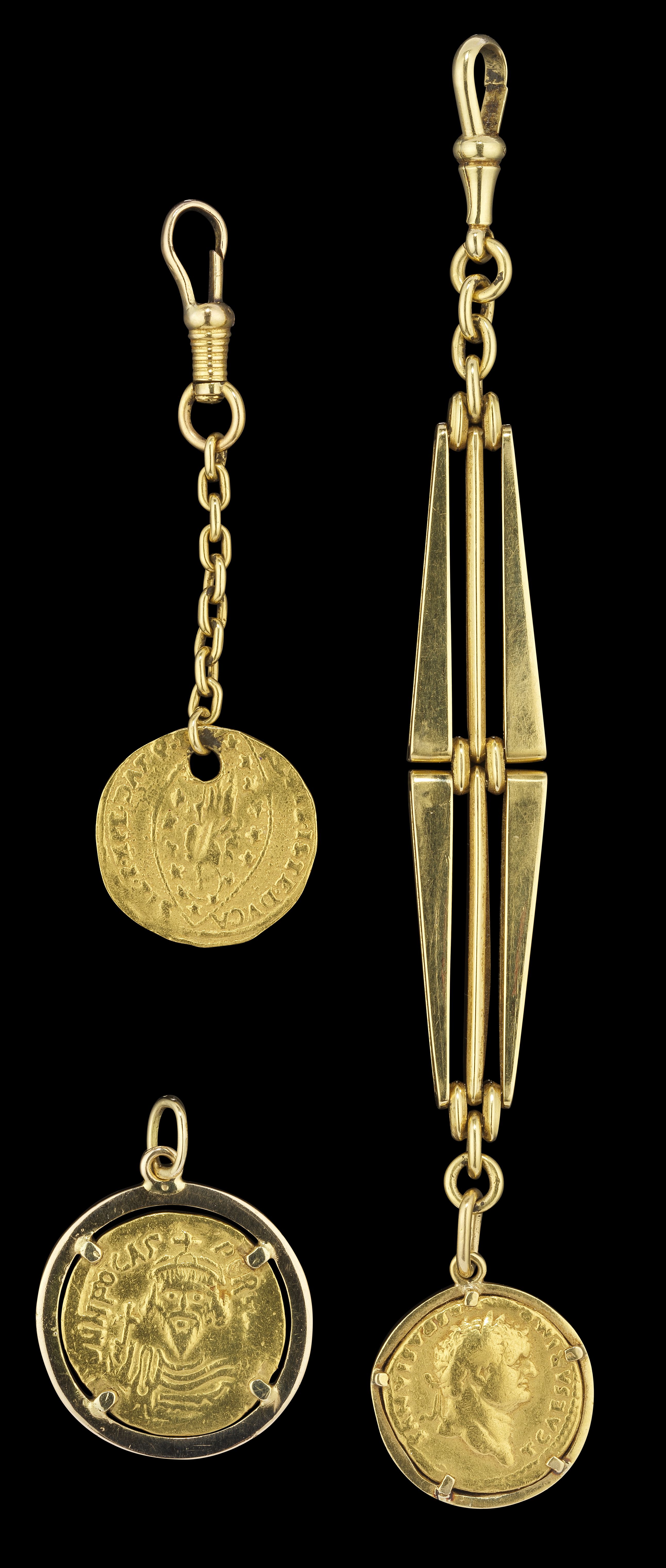 4446. Suite de trois pièces montées en pendentif ou porte-clés