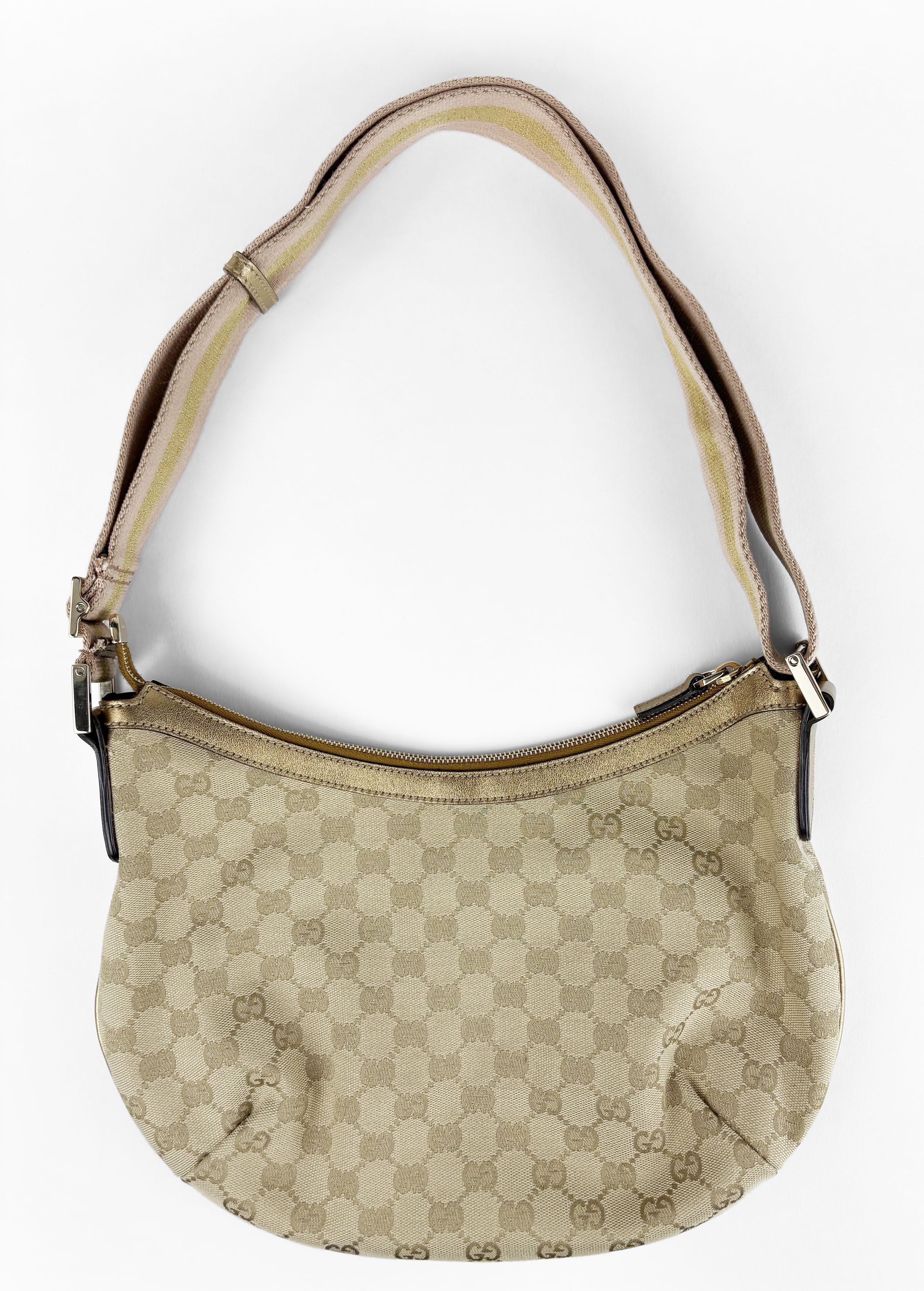 Toile GG dorée, garnitures en cuir et métal doré, 20x34 cm