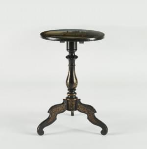 Bois noirci et plateau peint à décor d'un pavillon oriental, 71x45 cm