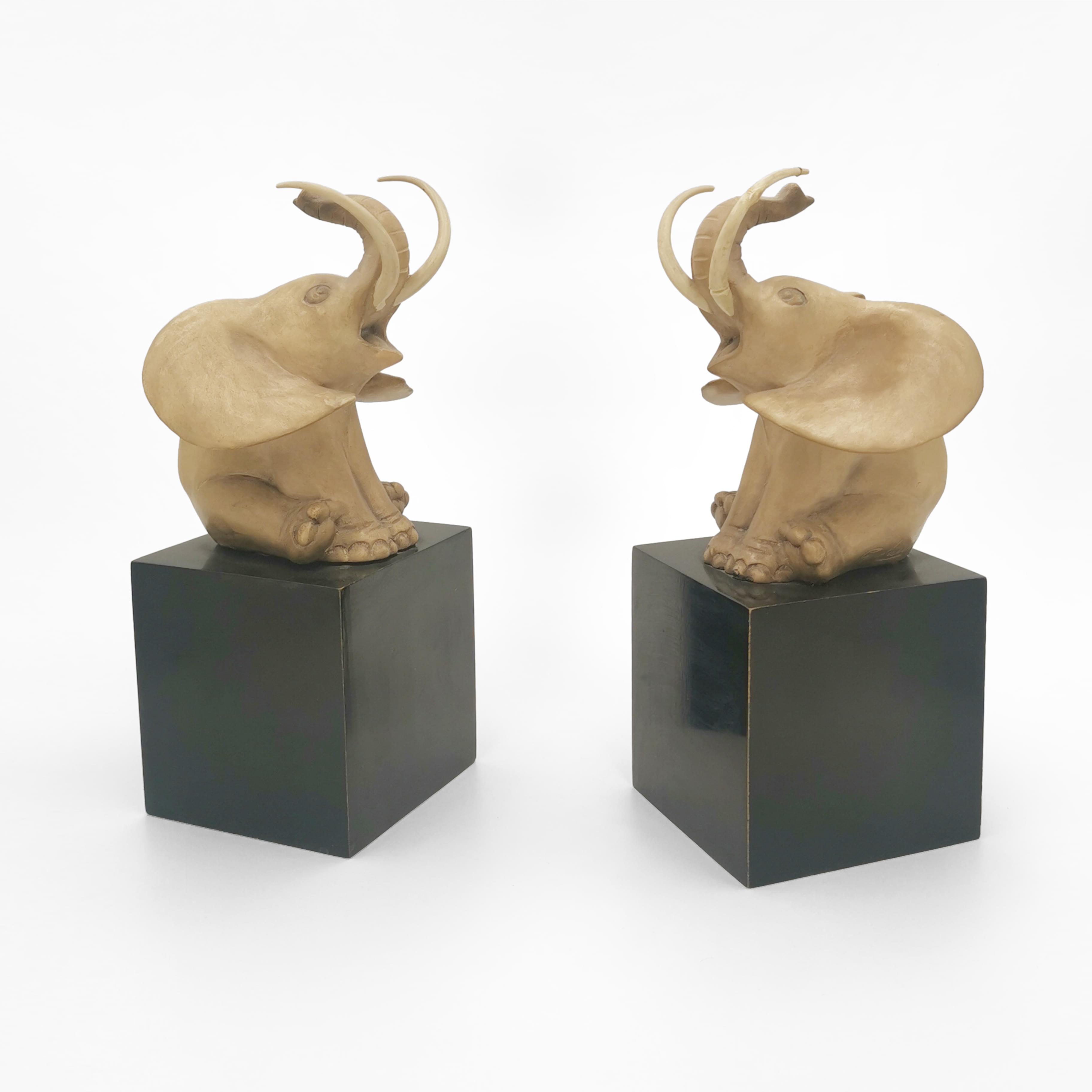 Paire de serre-livres en forme d'éléphant, céramique, signés, H 24 cm