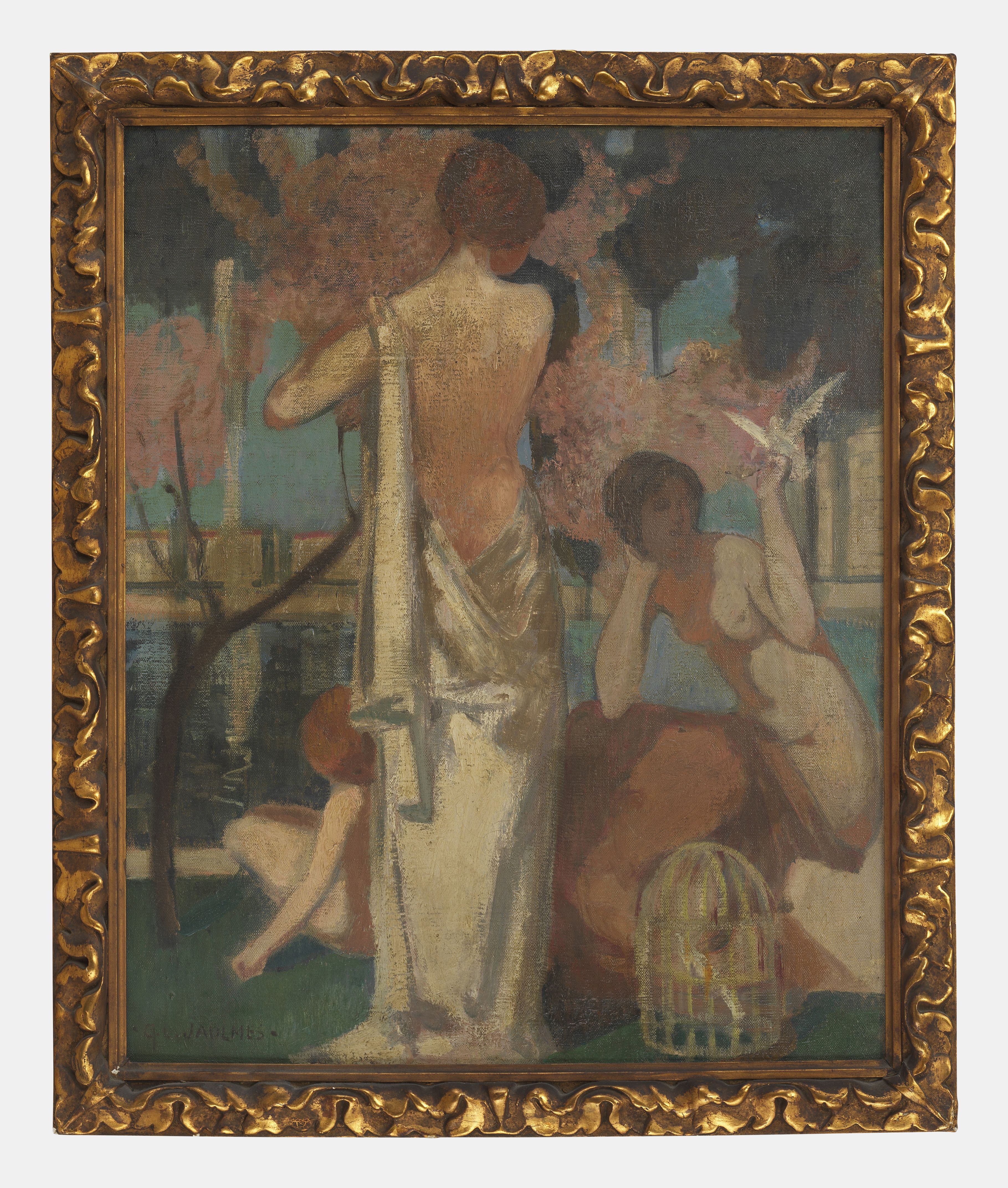 Jeunes femmes aux colombes, huile sur toile, signée, 72x58,5 cm. Provenance: Les Stern, une famille de collectionneurs.
