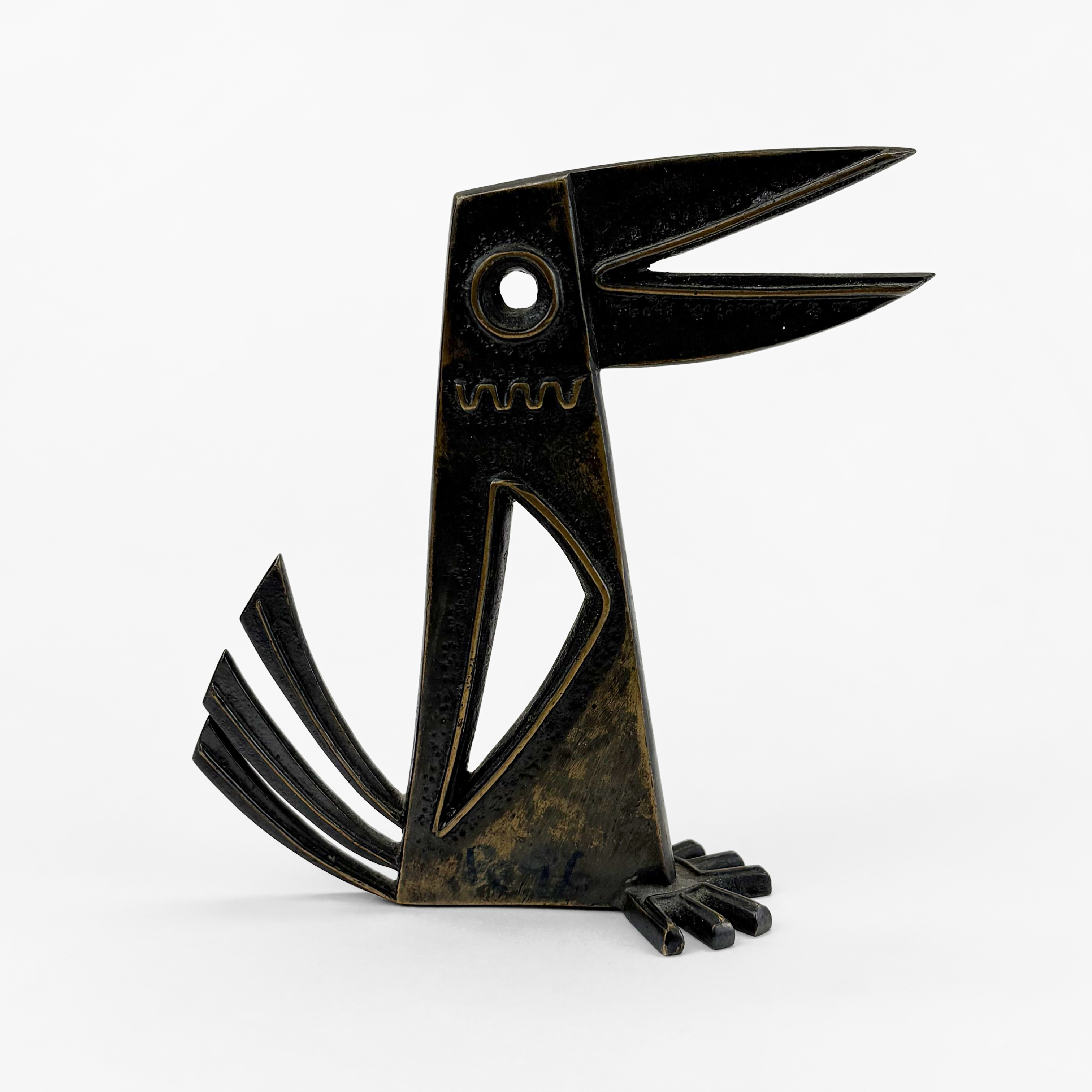 Oiseau stylisé, bronze à patine brune, signé sur le bec, H 12 cm