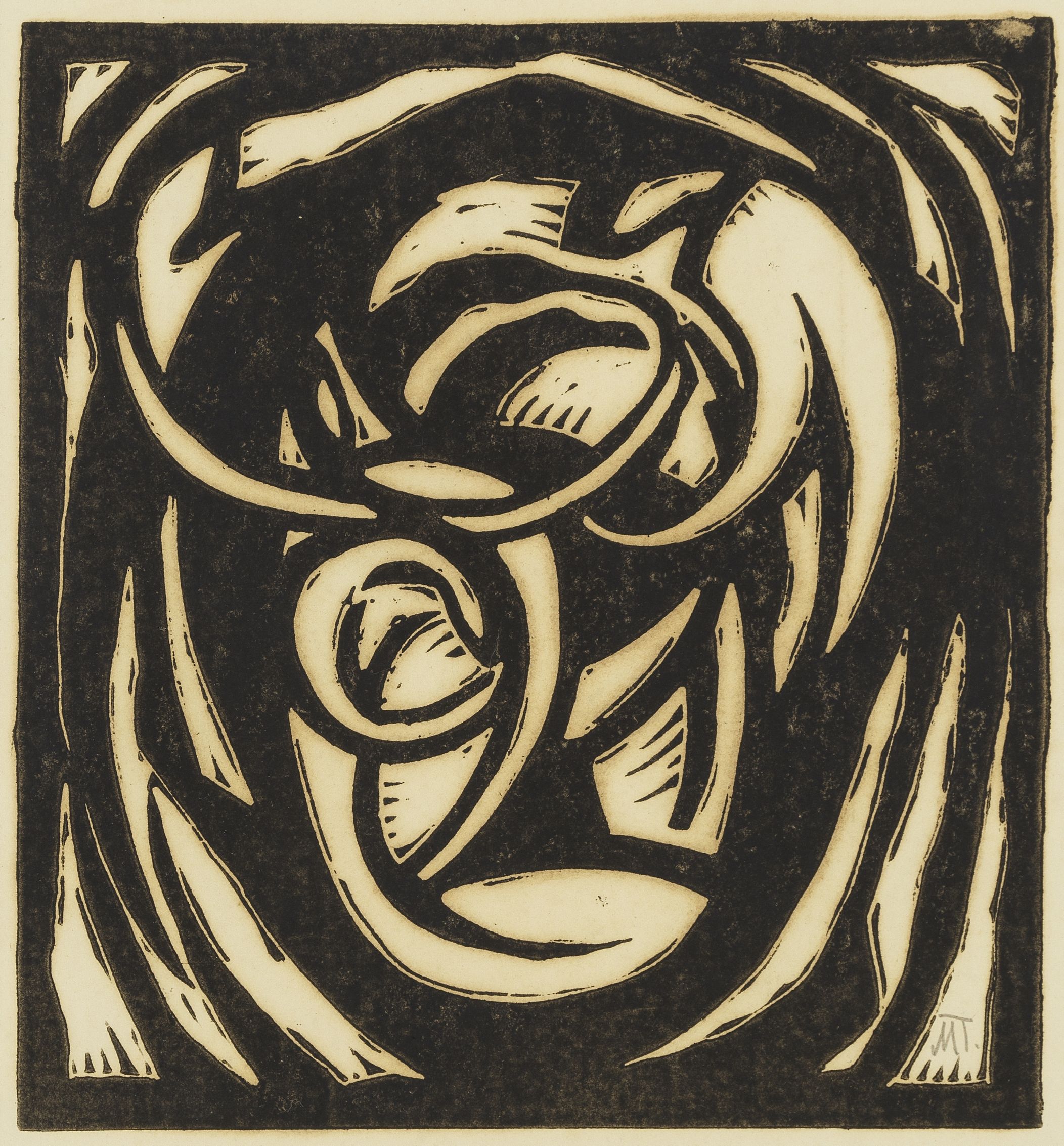 Composition II, xylographie, monogrammée, 18x18 cm