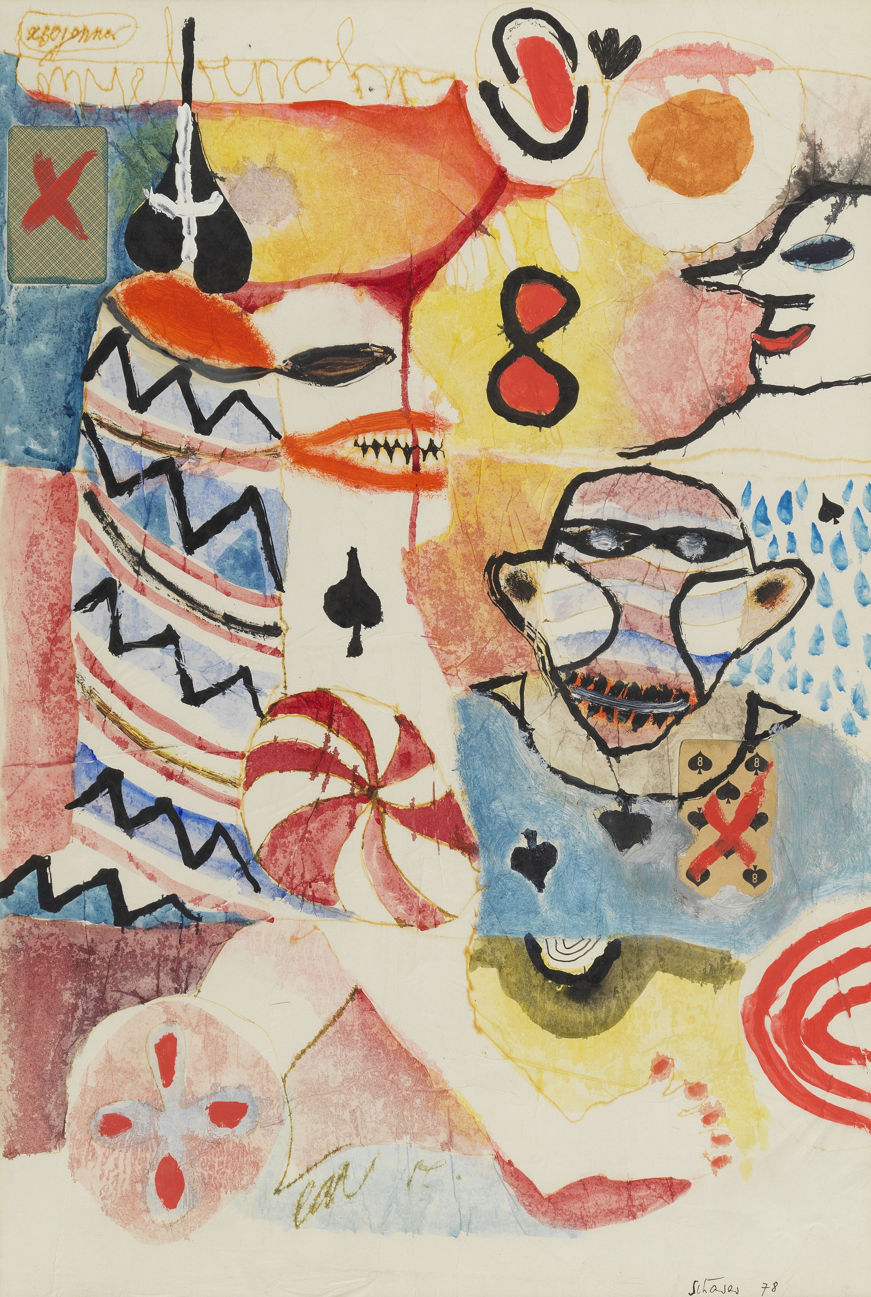 Figures colorées, technique mixte sur papier, signée et datée 78...