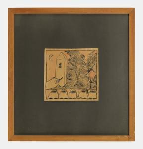 Visage surréaliste, gouache, signée et datée 78, 46x32,5 cm