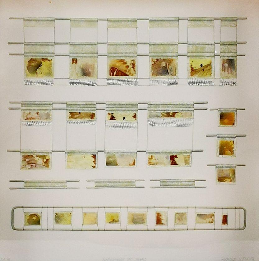Elfenflaggen und Signale, technique mixte, titrée, signée et datée 3.6.76, 19x19 cm