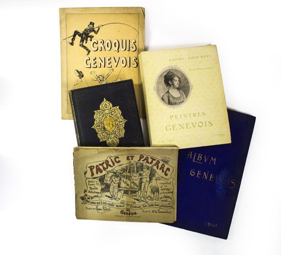 - Album Genevois. Genève, 1901; in folio perc. bleue ornée, et 3 albums divers