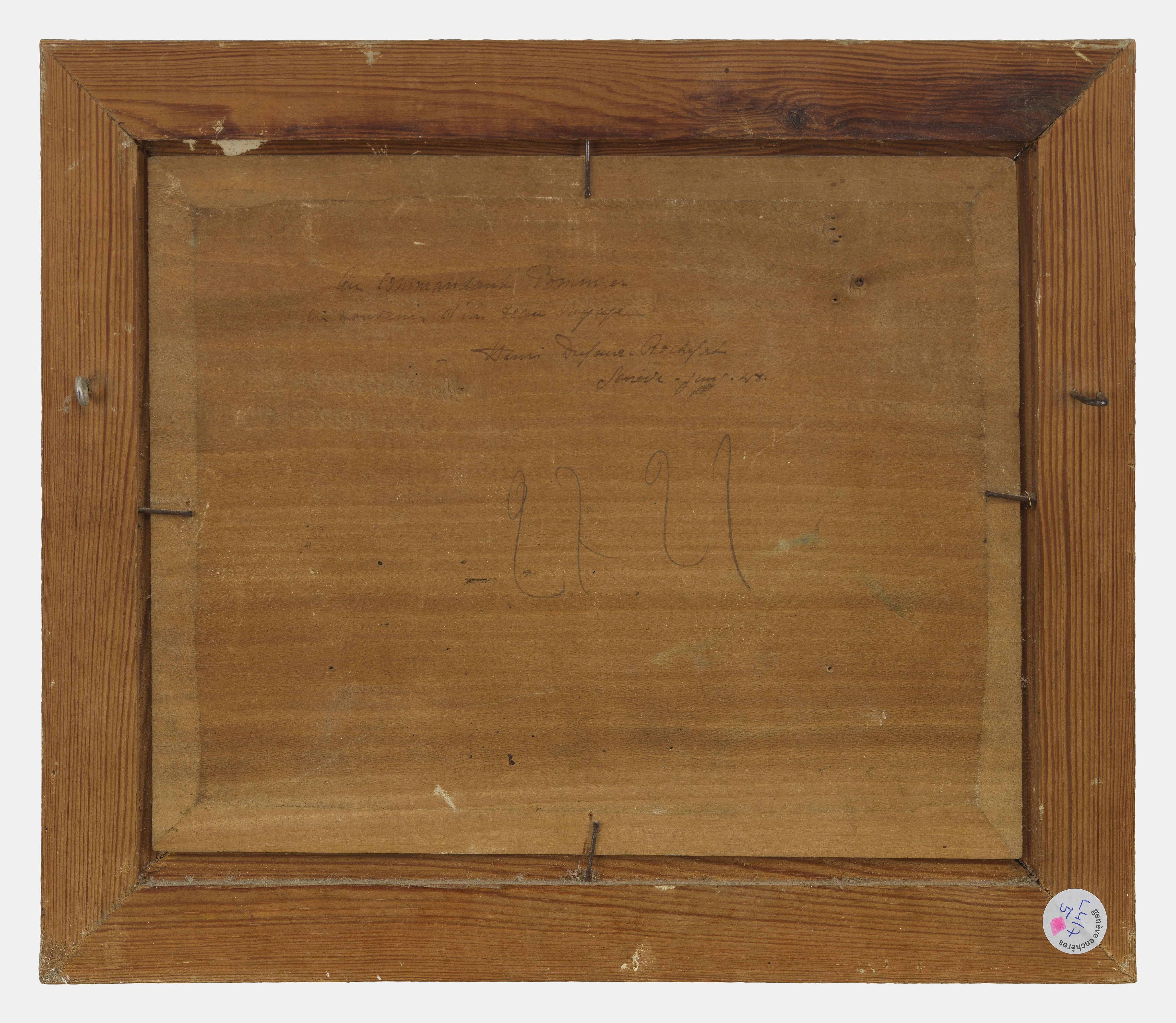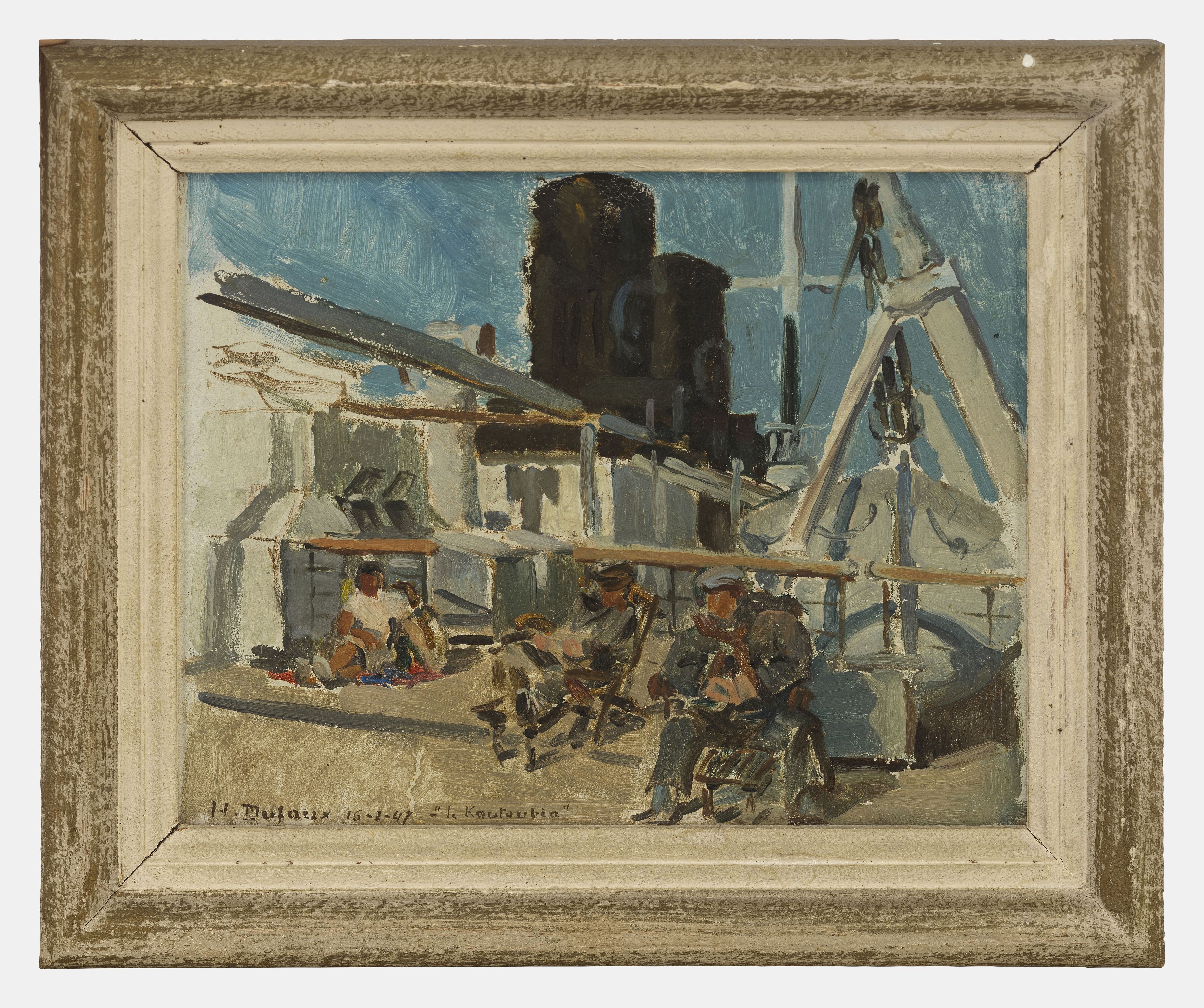 Le Koutoubia, huile sur panneau, signée et datée 16-2-47, dédicace au dos, 21x27 cm