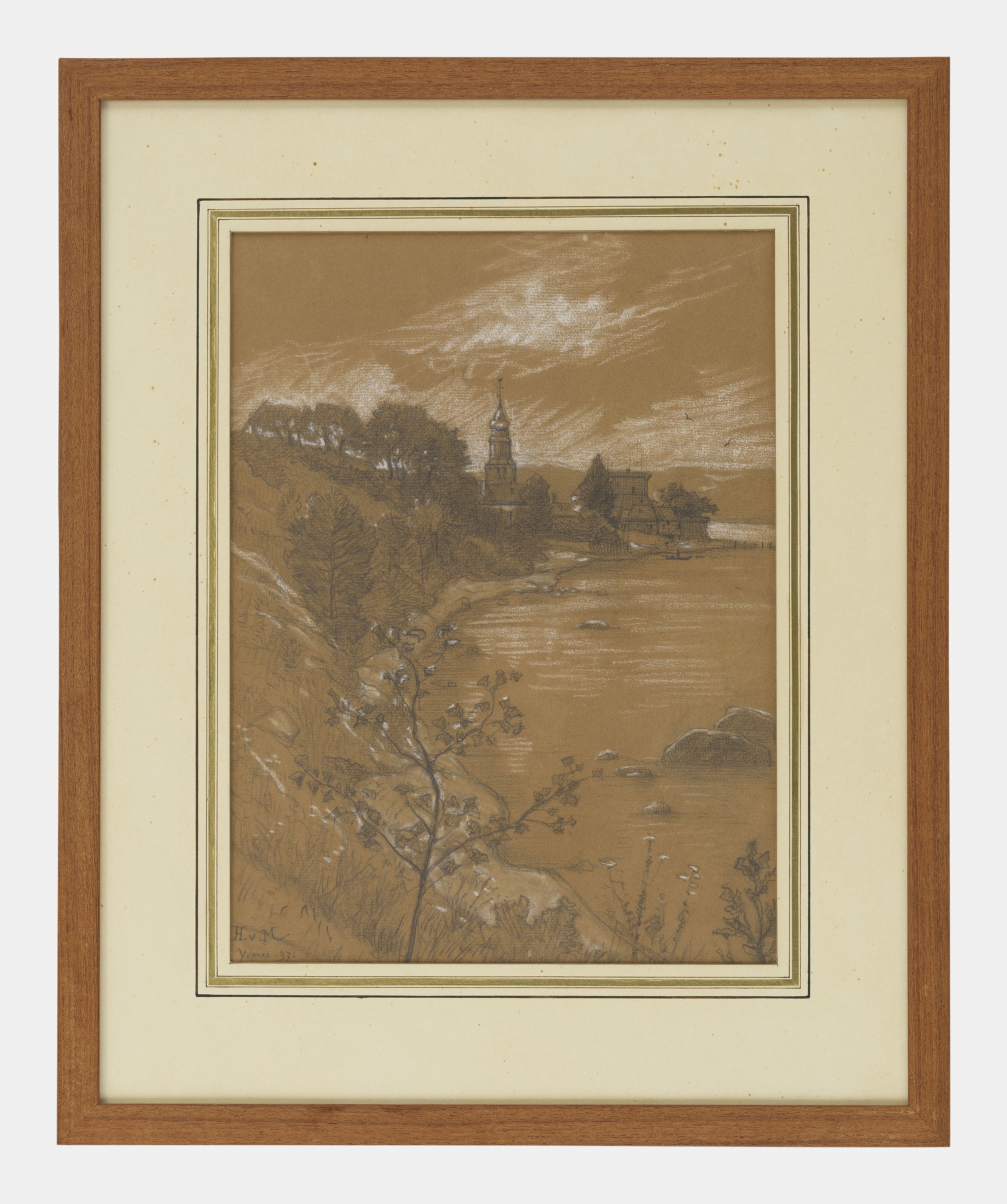 Vue d'Yvoire, crayon et gouache sur papier, monogrammé et daté 1897, 34x27 cm