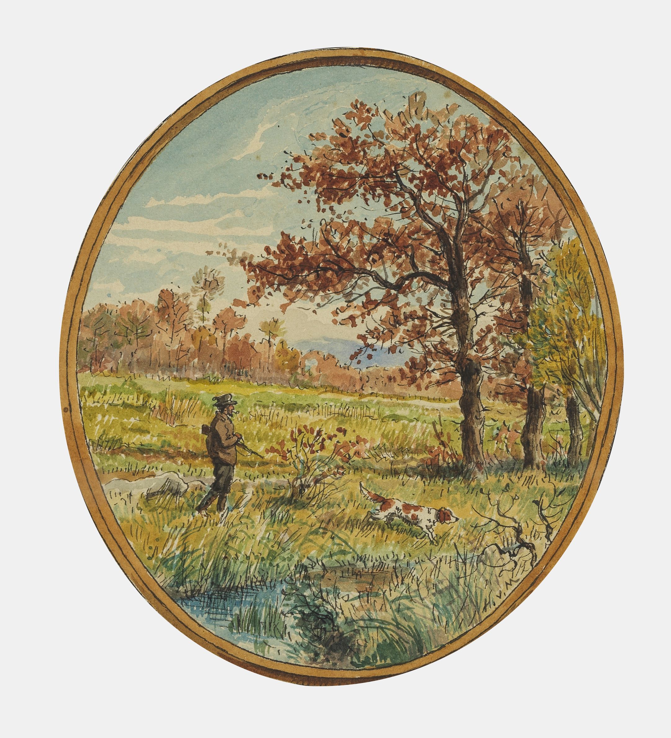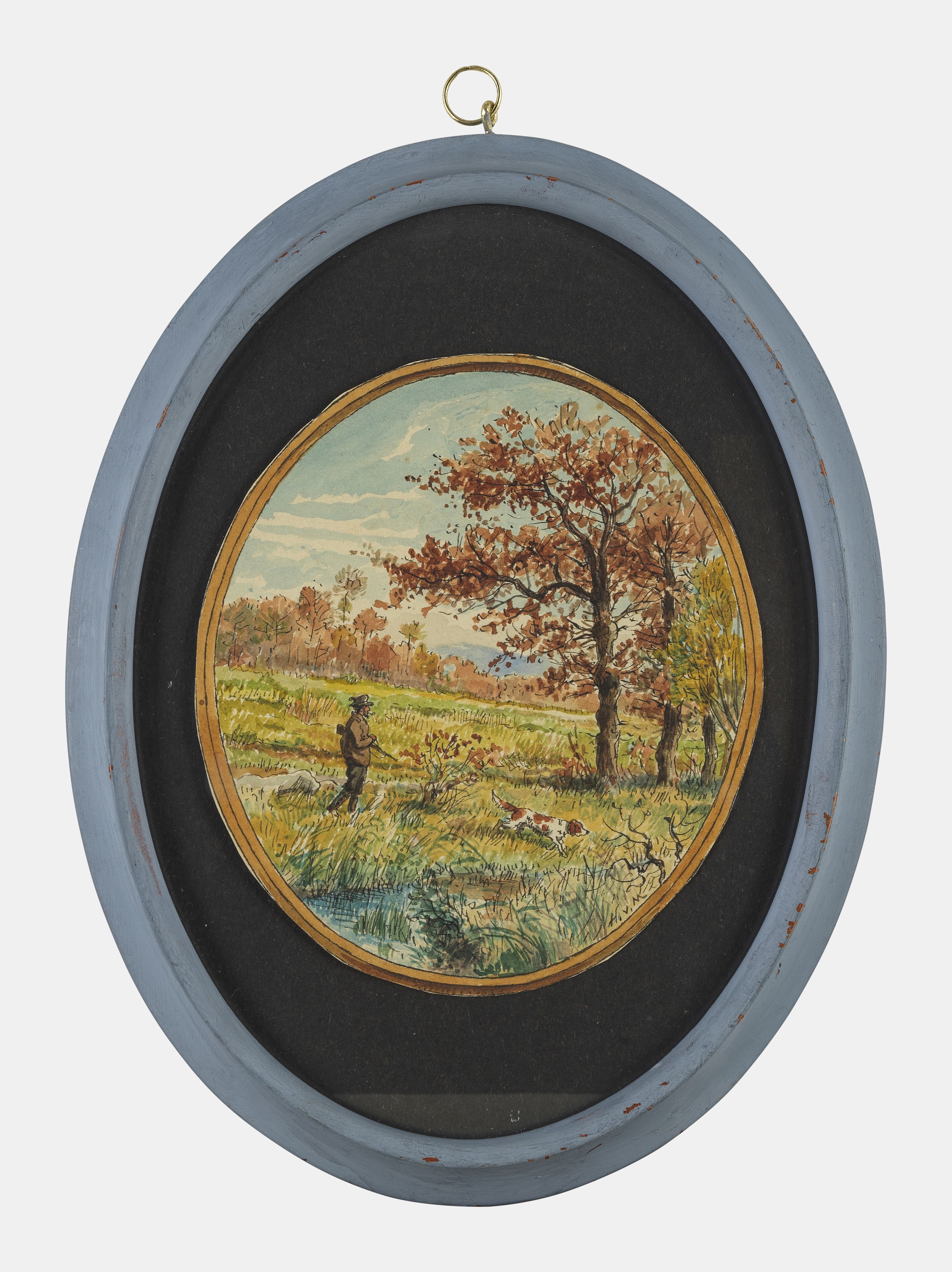 Vue d'Yvoire, crayon et gouache sur papier, monogrammé et daté 1...
