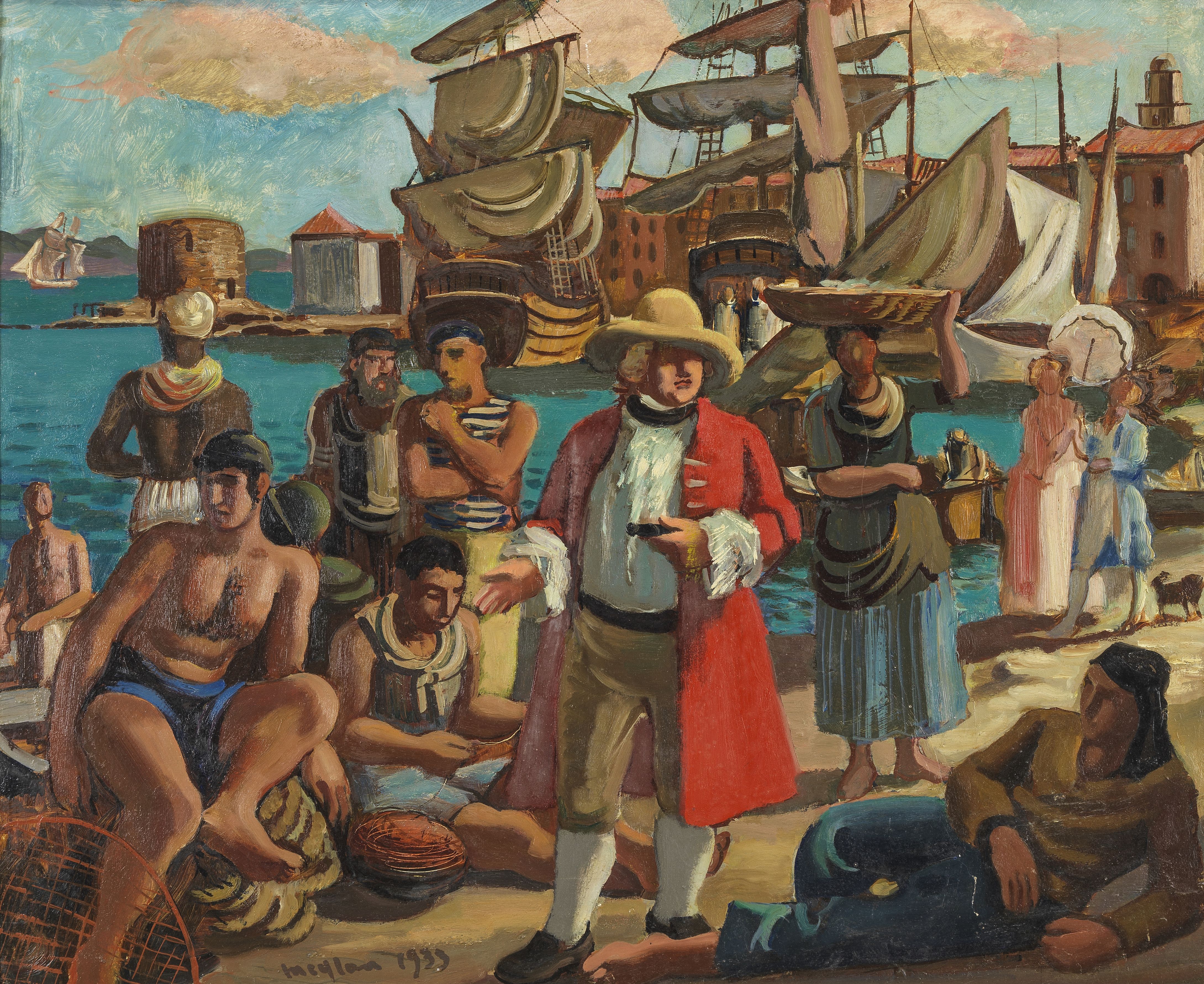 Le Bailli de Suffren sur les quais de St Tropez, huile sur toile...