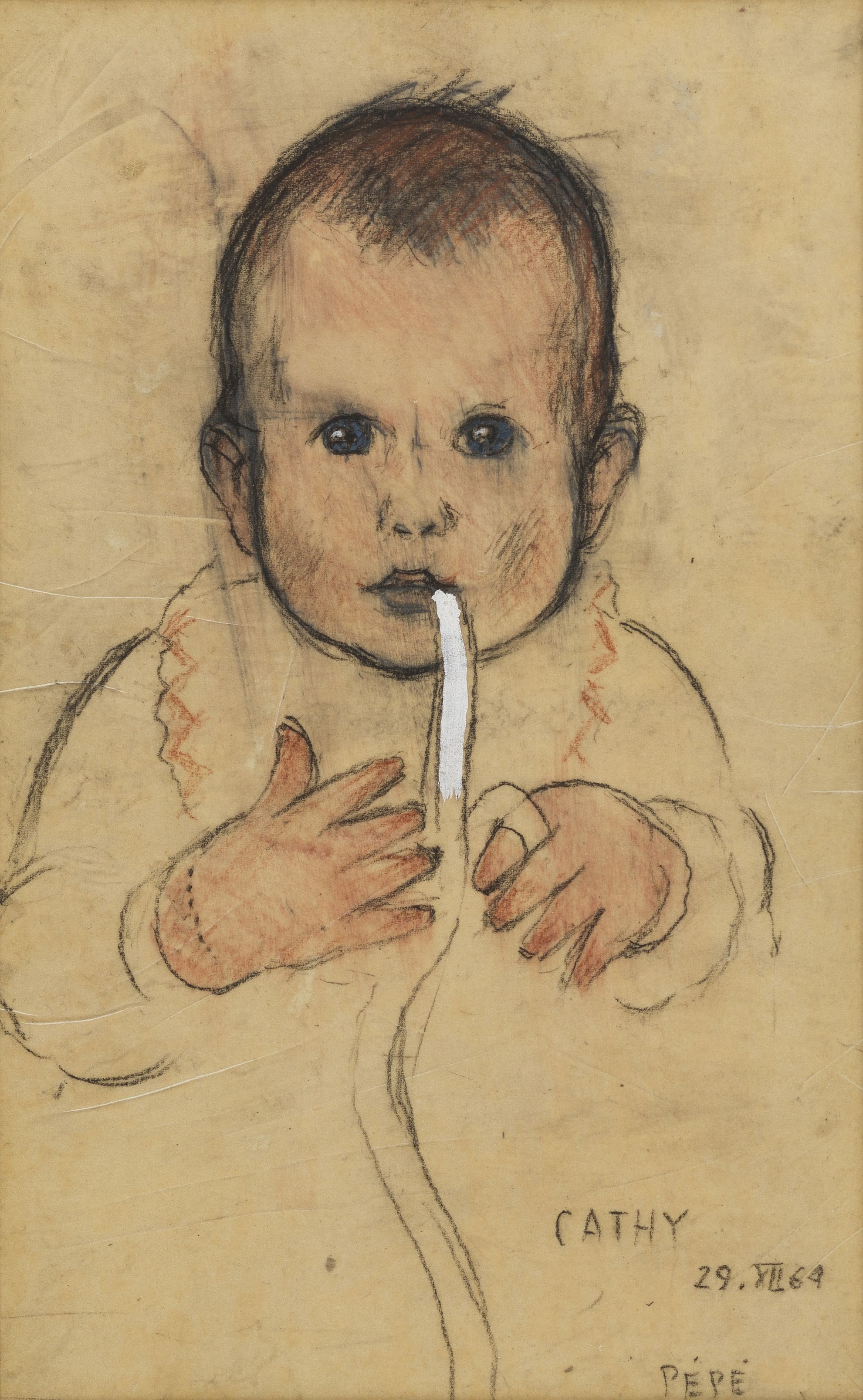 Portrait de Cathy, fusain, sanguine et gouache sur papier, signé...