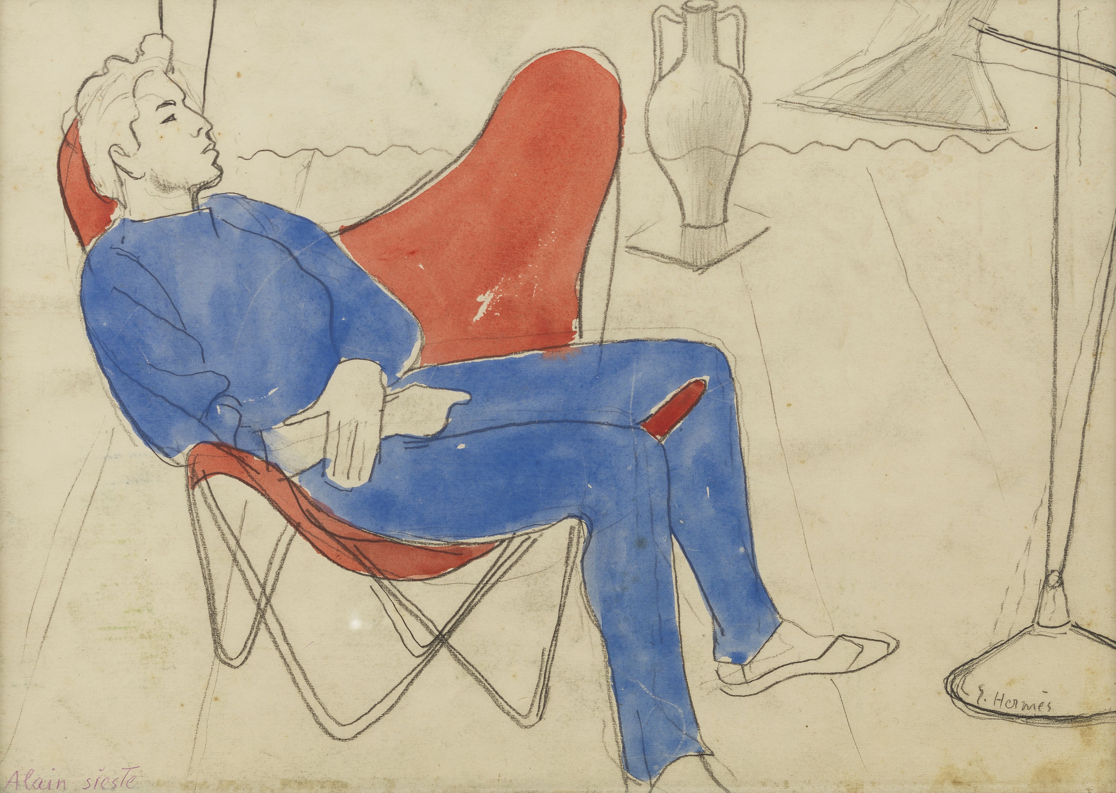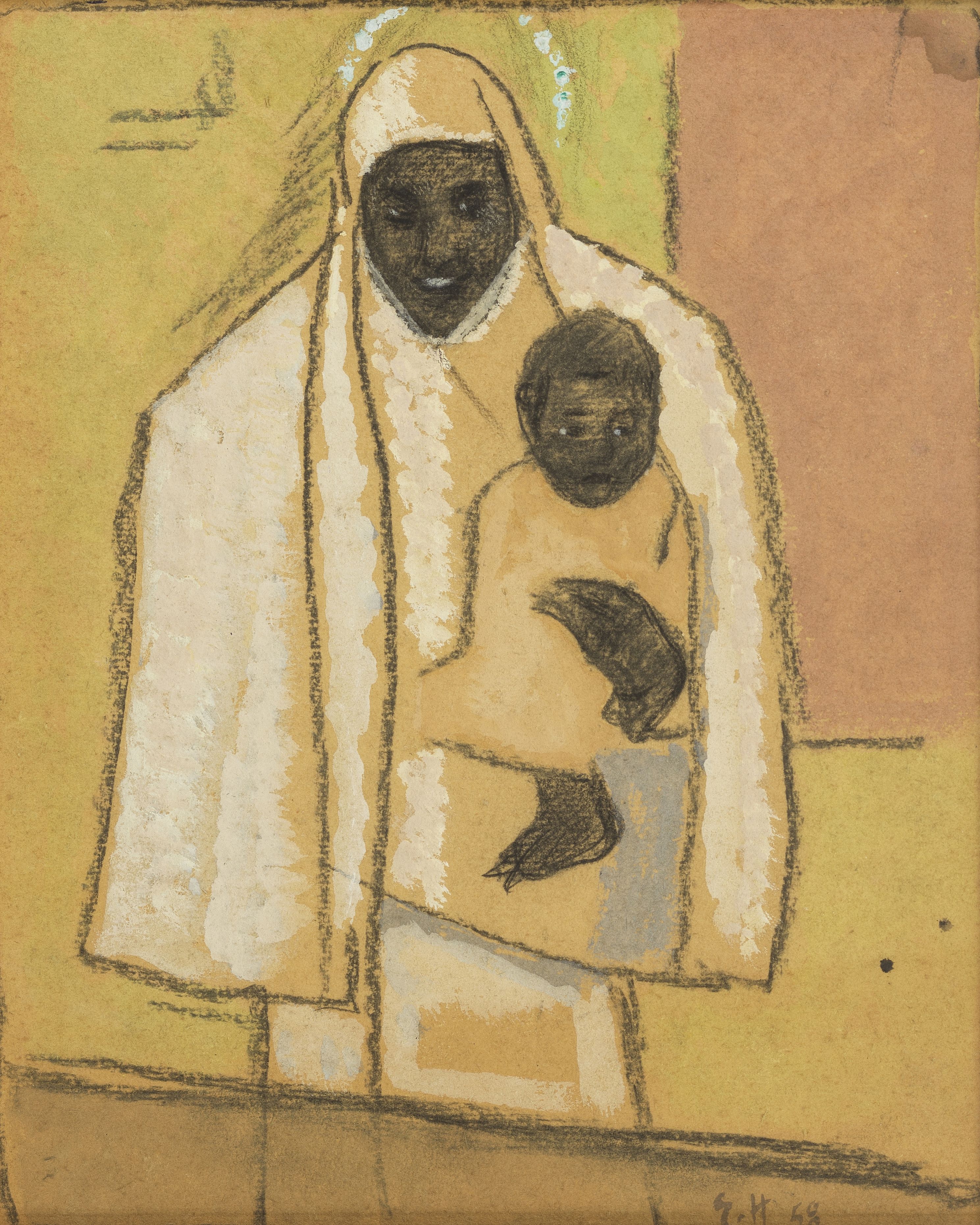 Maternité, fusain et gouache sur papier, monogrammé et daté 58,...